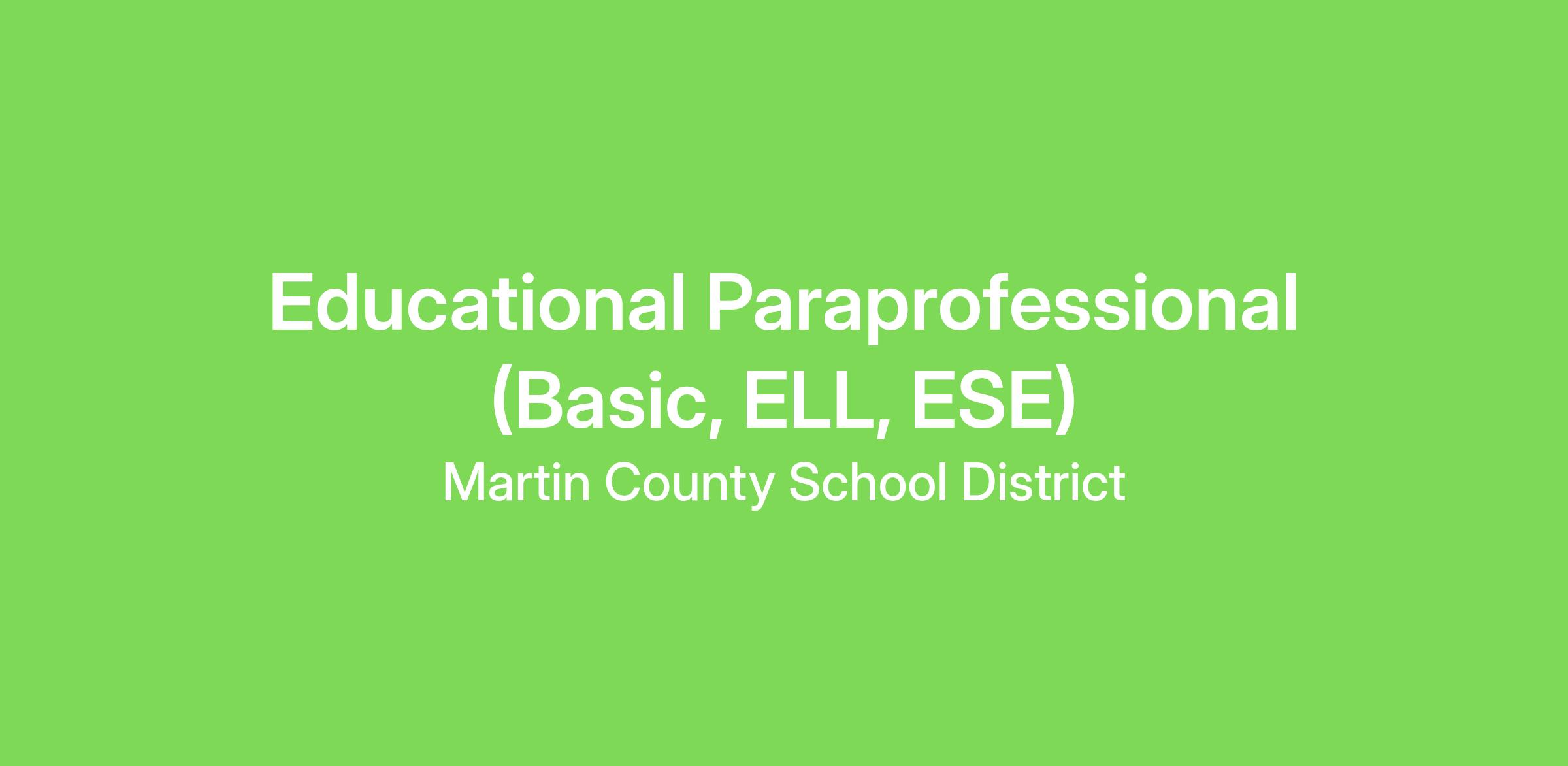 Educational Paraprofessional (Basic, ELL, ESE)