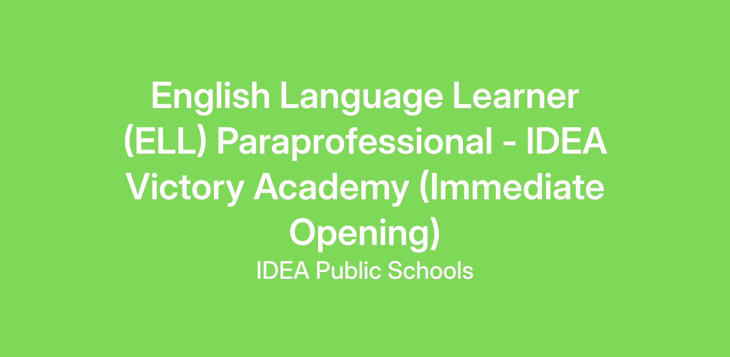 Role Mission: The English Language Learner (ELL) paraprofessional position is ideal for a bilingual candidate looking to gain valuable experience in Exceptional Student Education teaching, particularly when it comes to accommodations for our scholars who are still in the process of learning the English language and are currently operating at a limited English proficiency level. This position is also ideal for a candidate who has at least 30 college hours, wants challenging work, and is seeking the opportunity to advance in his or her education career.