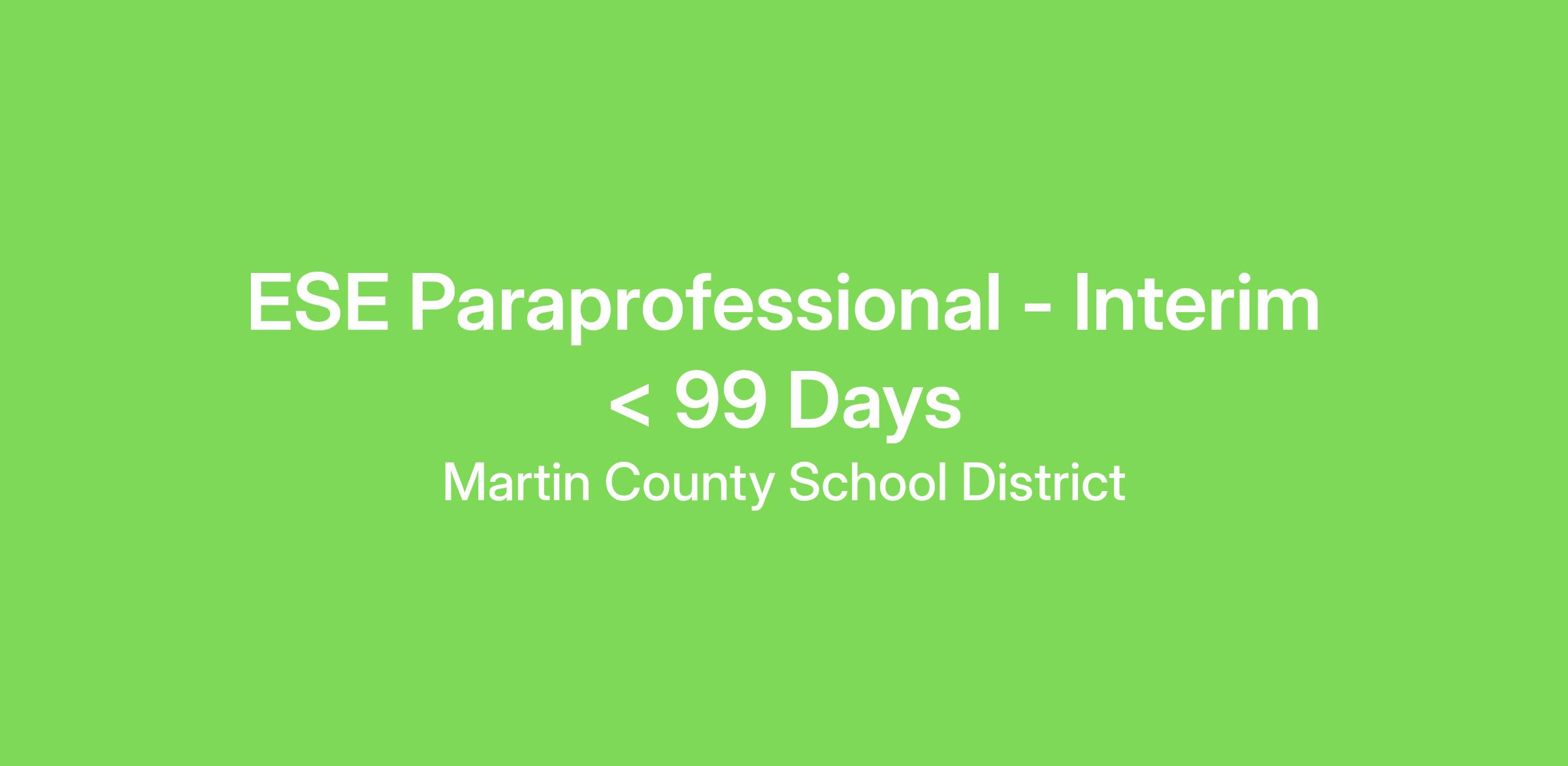 ESE Paraprofessional - Interim < 99 Days