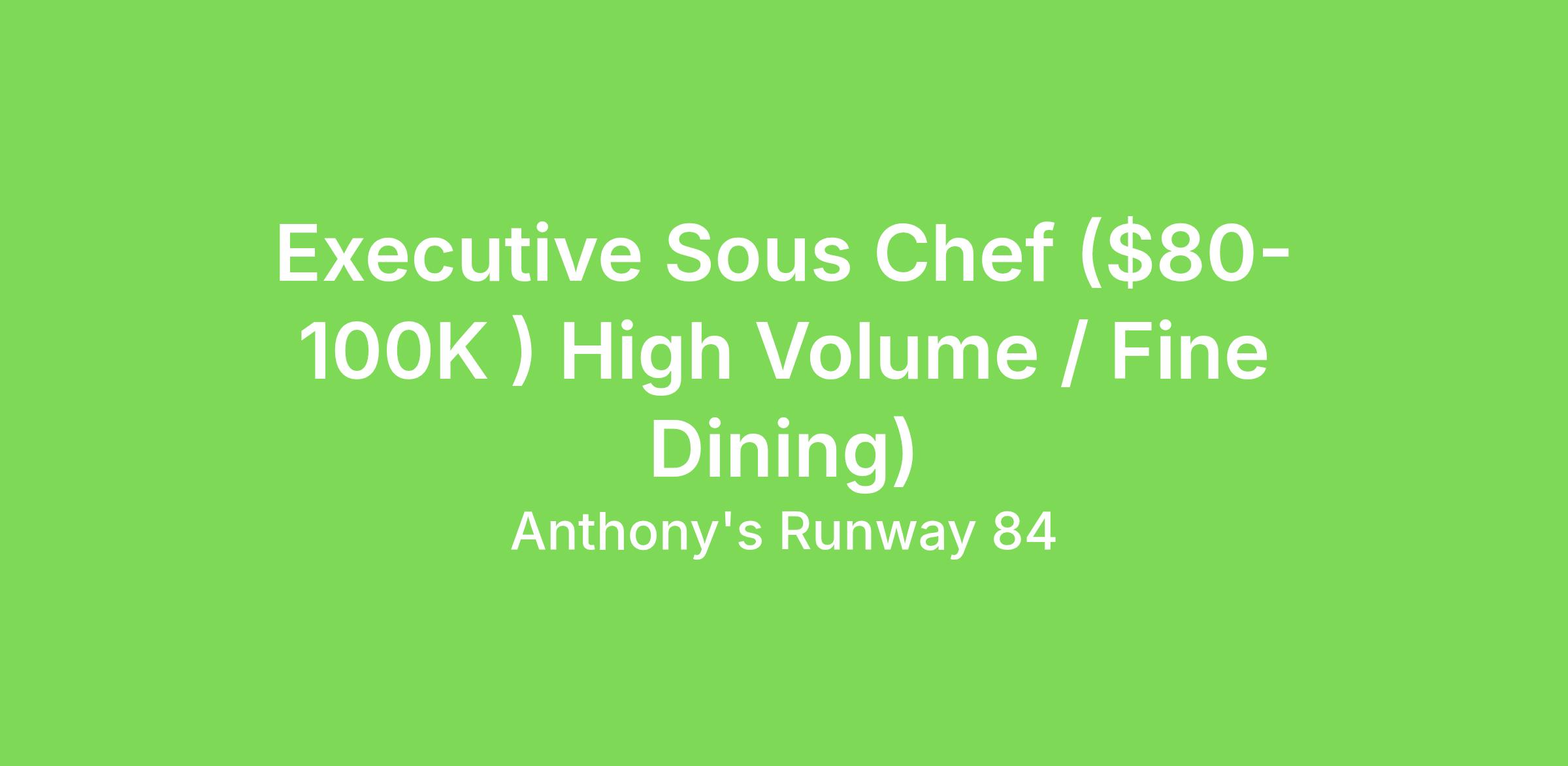· Minimum 4 years’ experience as a Sous Chef in Fine Dining / Hight Volume · Open availability including weekends, evenings and holidays. · Flexible and willingness to adapt to ongoing changes. · Able to inspire, motivate, and develop employees. · Proven track record in building high-performing teams. · Professional and confident verbal and written communication with guests, employees and ownership. · Have an interest in hospitality. · Must be flexible and team oriented. · Ability to work under pressure with grace and ease. · Available to work evenings and weekends. · Ability to multitask, efficient and a fast worker. · Able to lift up to 50 lbs. occasionally.