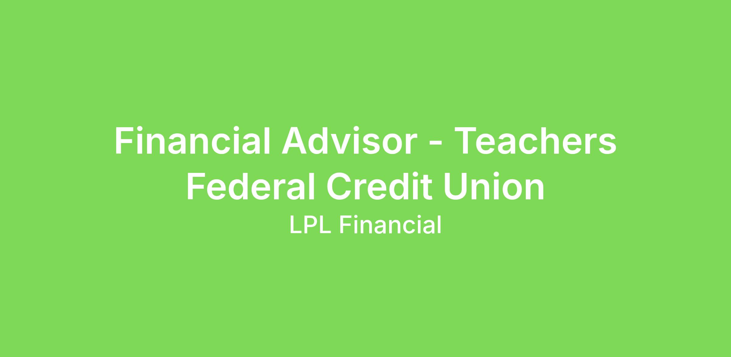 Financial Advisor - Teachers Federal Credit Union