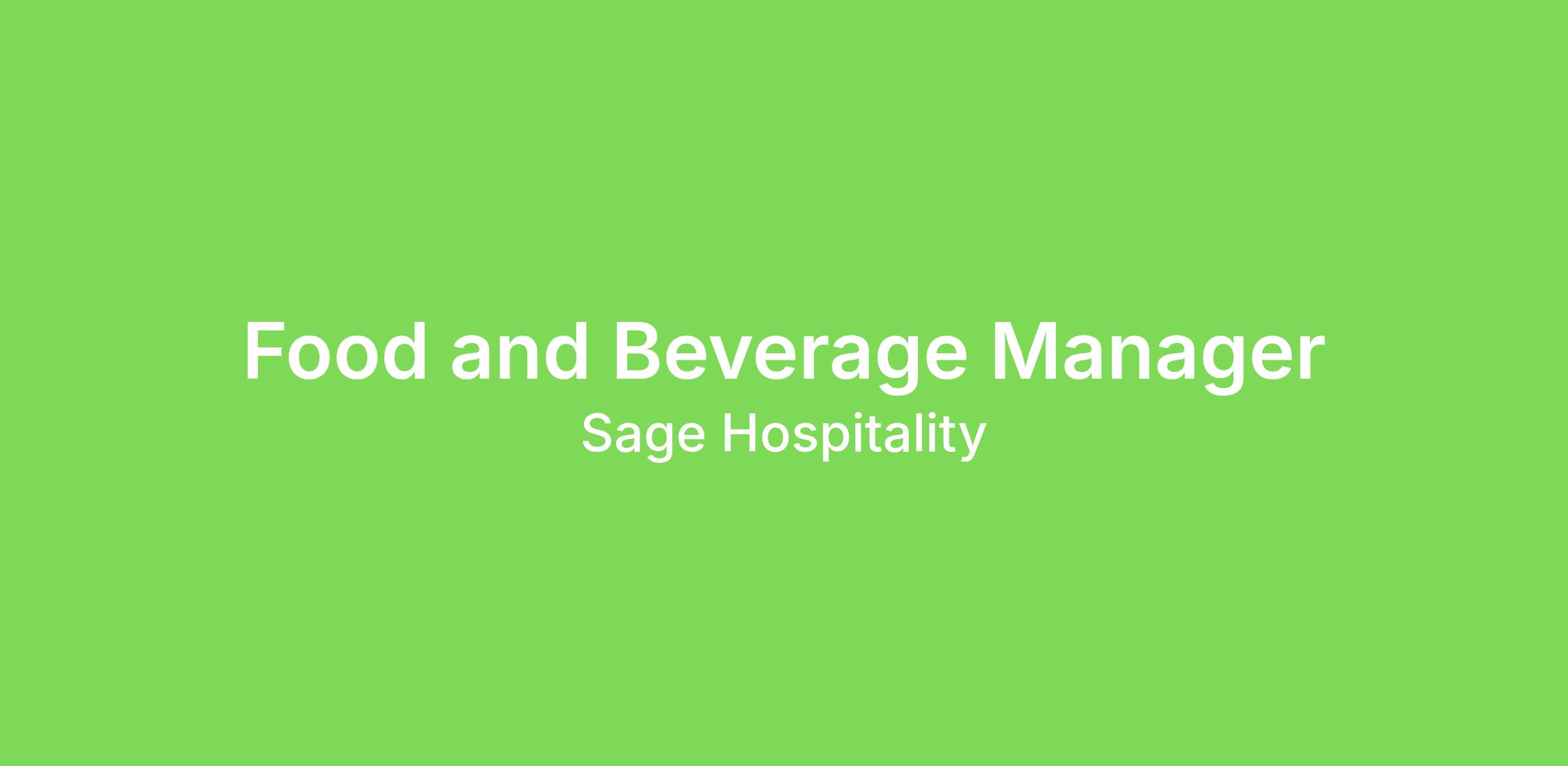 Food and Beverage Manager