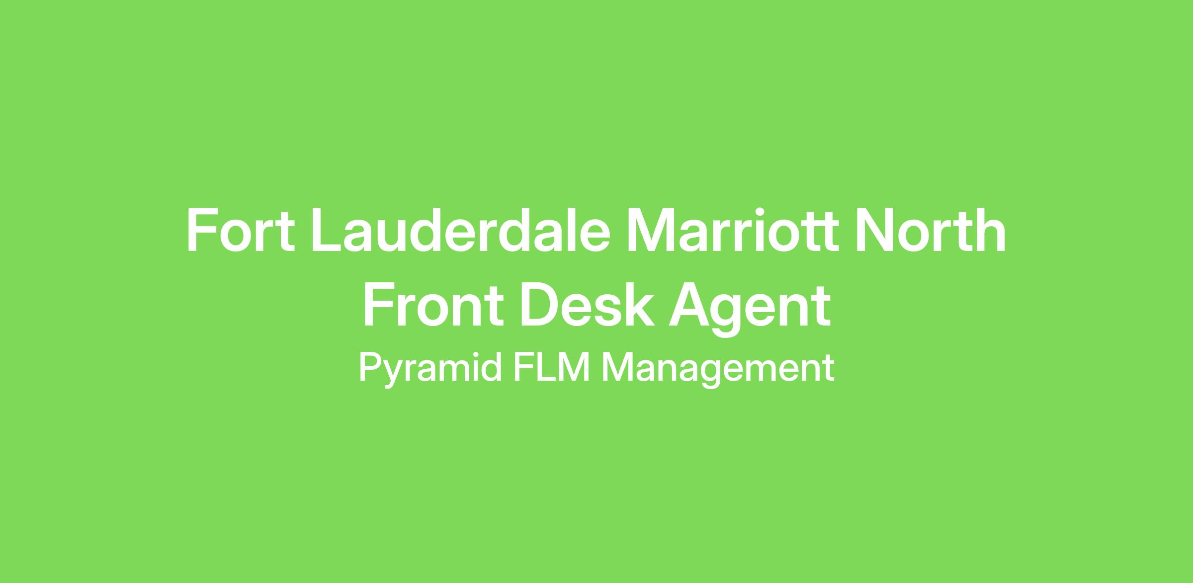 Fort Lauderdale Marriott North is looking for a highly motivated individuals to join our Front Desk team. The ideal candidate uses their engaging personality to create a memorable first impression for our guests. While checking in, registering guests, the Front Desk Agent is a source of knowledge for the guest for everything about the hotel, its amenities, and the local area.