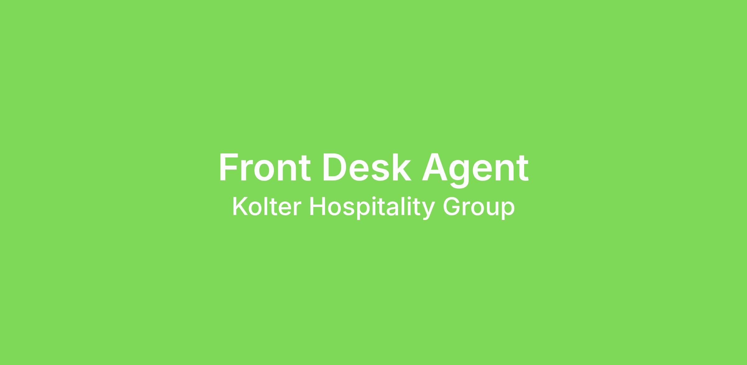 Overview: A Kolter Hospitality Front Desk Agent delivers service excellence to our guests creating a comfortable and welcoming environment. This position is responsible for processing check-ins and check outs, issuing room keys, and resolving guest issues with complying with all Kolter Hospitality and Hyatt standards, policies and procedures.