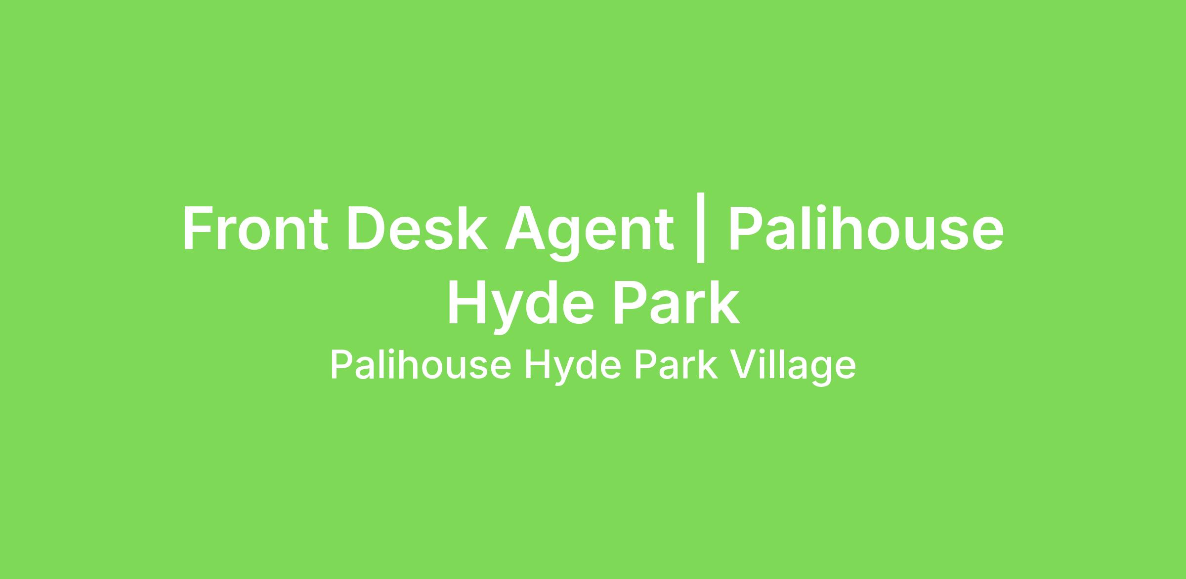 FRONT DESK AGENT | PALIHOUSE HYDE PARK