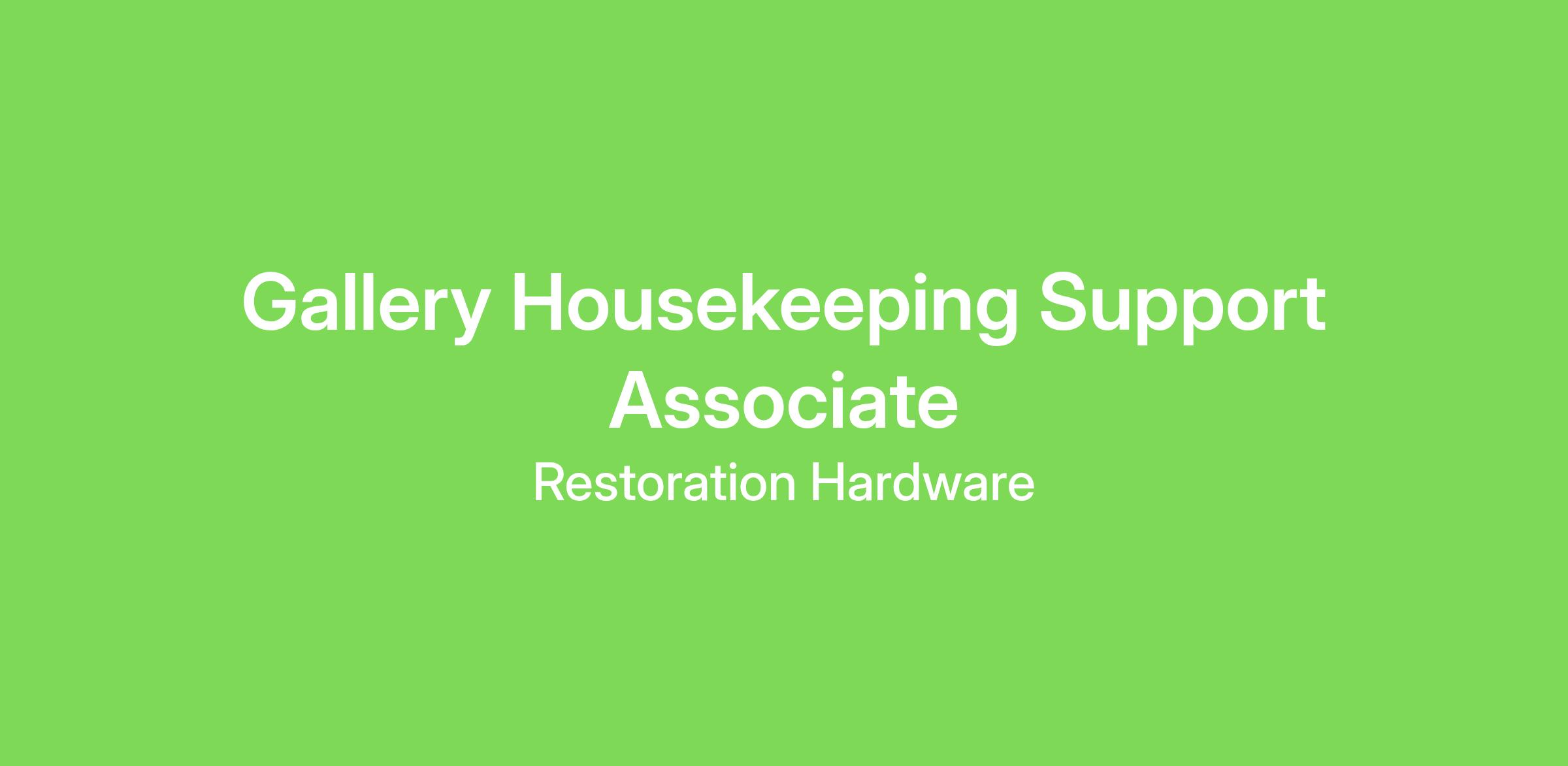 RH is seeking a Housekeeping Support Associate to join our team in providing world-class service to guests while taking great care of our equipment and facilities.