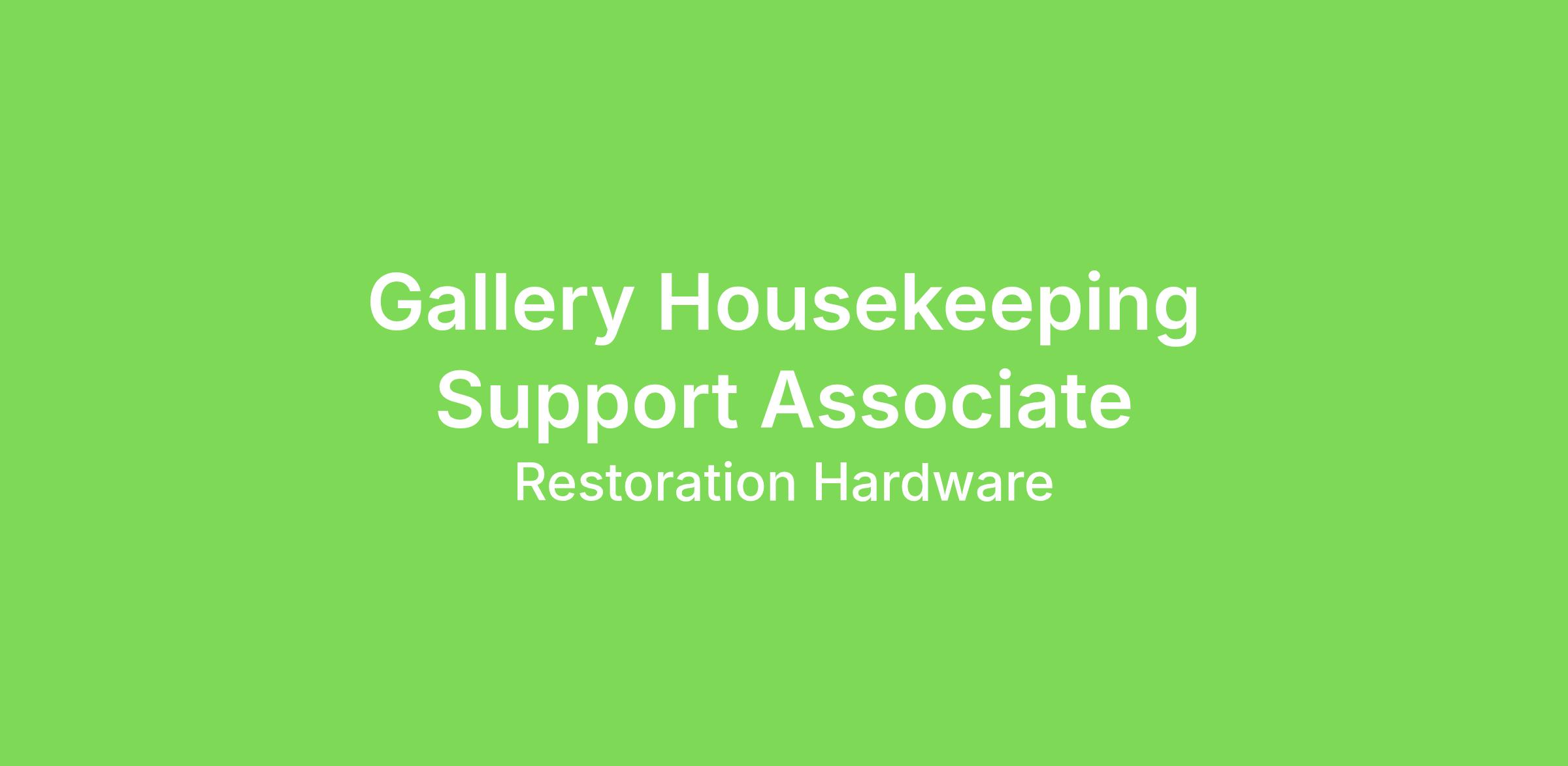 RH is seeking a Housekeeping Support Associate to join our team in providing world-class service to guests while taking great care of our equipment and facilities.