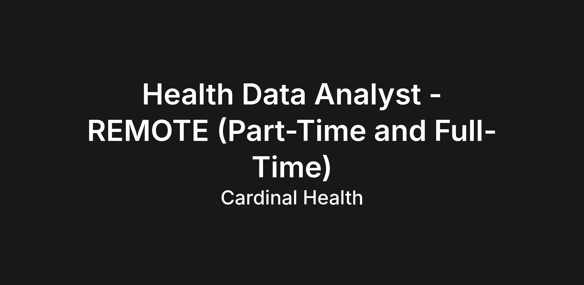 Health Data Analyst - REMOTE (Part-Time and Full-Time)