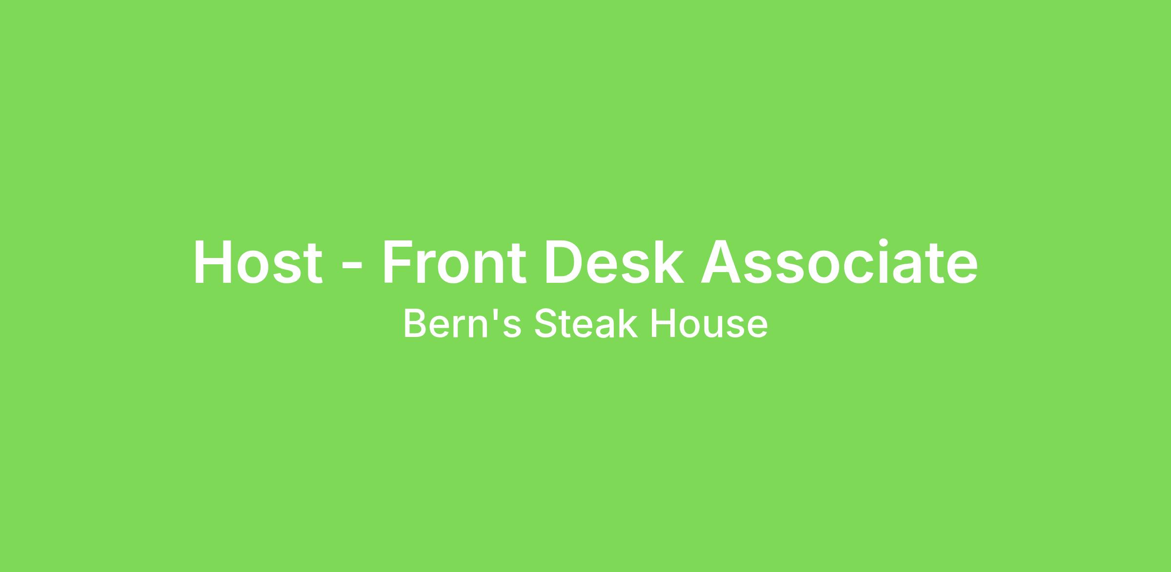 Bern's Steak House Harry Waugh Dessert room is seeking dedicated, detail oriented and professional candidates for an entry level position in a high-volume restaurant. We will provide you with the tools to learn, grow, and become a confident and knowledgeable asset in any professional setting.