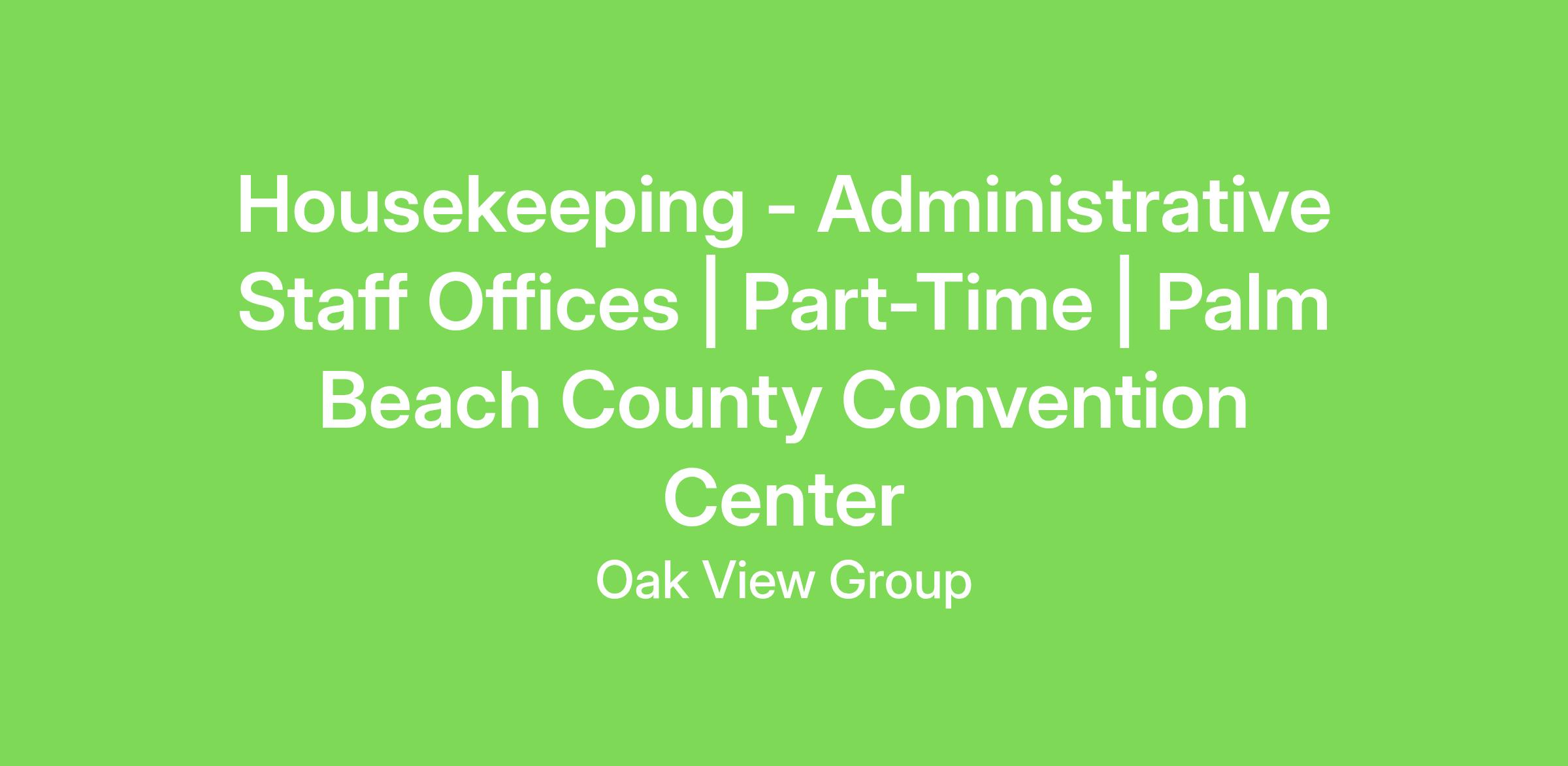 The part-time Housekeeper - Administrative Staff Offices position will maintain the cleanliness of all internal facility spaces—including administrative offices, restrooms, and other staff areas on a daily basis. Personnel, if necessary, may be trained to operate equipment used in the maintenance of convention facilities such as floor scrubbers, compactors, and other maintenance equipment. The available shift for this position is Monday–Friday, 6:00 PM to 10:00 PM.