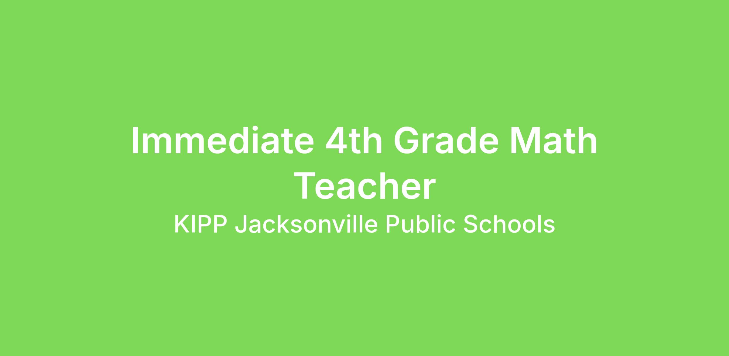 KIPP Jacksonville Public Schools seeks a Lead Elementary teacher for our 4th grade classroom this school year.