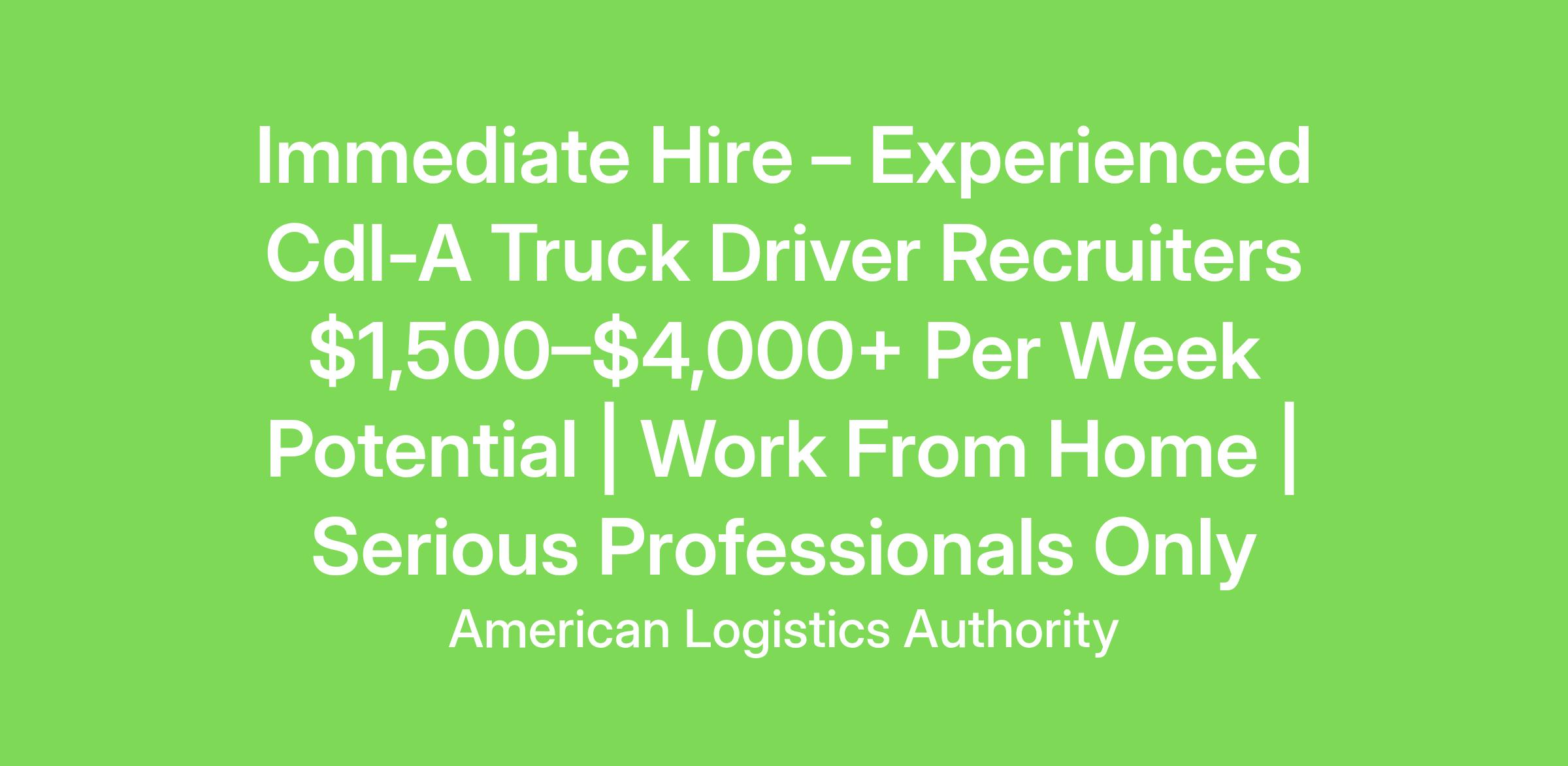Truck Driver Nation is urgently hiring experienced CDL-A Truck Driver Recruiters who know this business and know how to produce results. This is a performance-driven opportunity with real weekly earning power for recruiters who actually work the pipeline from start to finish.