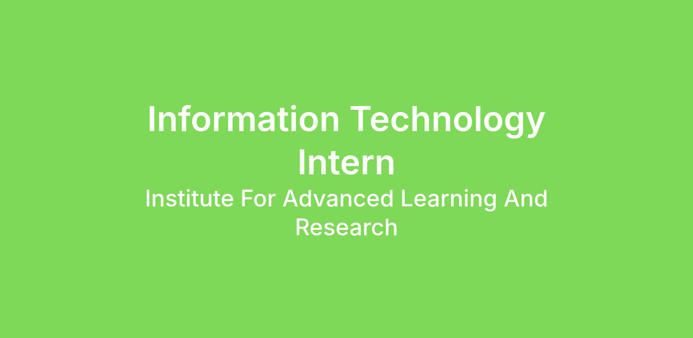 ABOUT THE INTERNSHIPInterested in information technology, hardware, software, and hands-on technical support? Join the Institute for Advanced Learning and Research (IALR) for a summer internship supporting a variety of IT operations across the organization. This internship offers real-world experience working with IT professionals on infrastructure, equipment imaging, A/V systems, and event technology support.