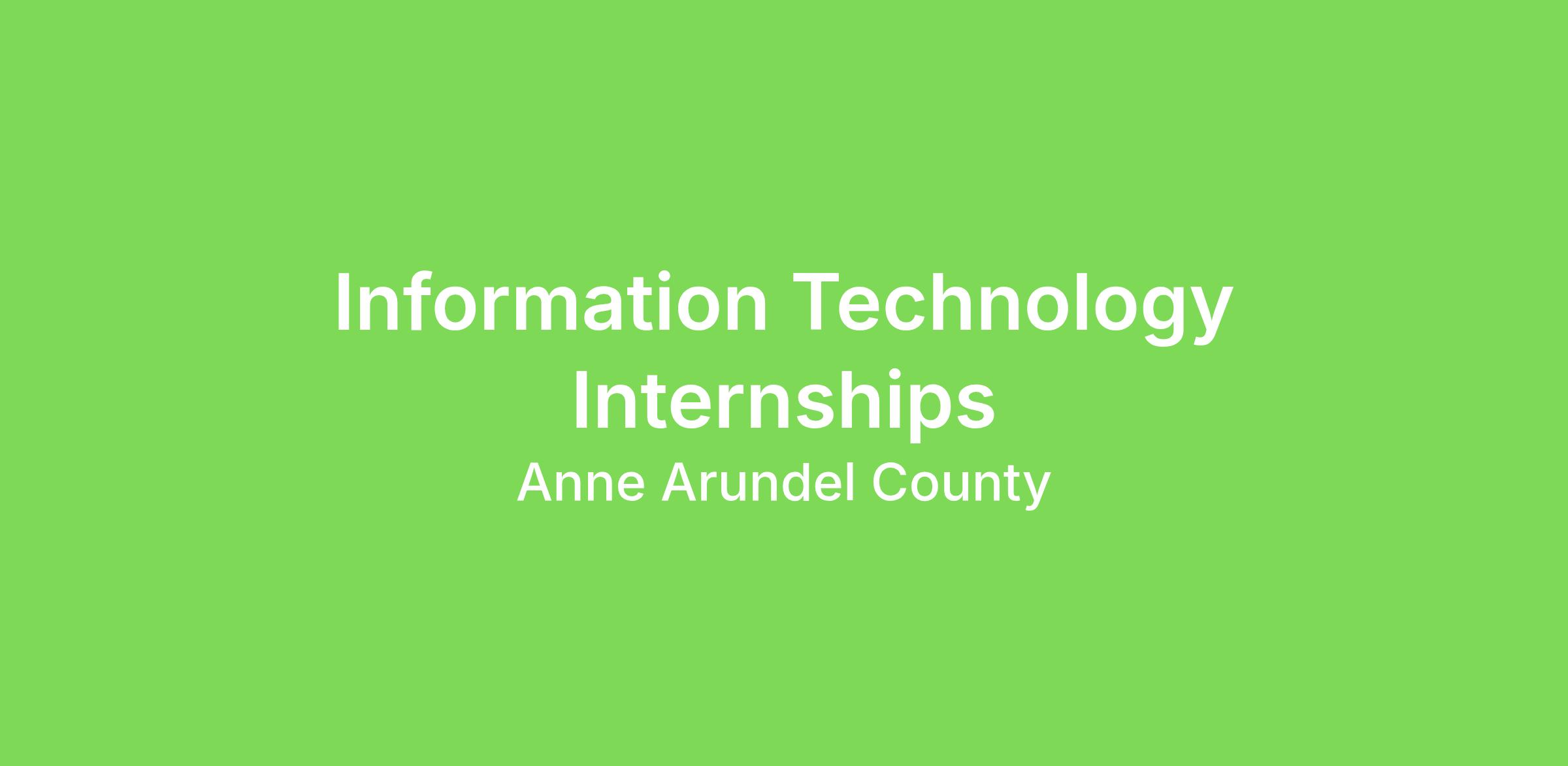 Cyber Security Internship: This internship is an extension of academic instruction and provides the opportunity to turn classroom instruction into practical application in the workplace.  The intern will draw upon the knowledge gained through their college coursework in order to perform the principal assignment and/or projects of this internship.  The intern will work directly with the Anne Arundel County cybersecurity officer and assist in the development of security policies and procedures, conducting security controls assessments, validating system configurations, identifying security weaknesses, performing vulnerability scans, and reporting findings to management for prioritization and remediation. The intern will assist and learn about risk management, vulnerability assessments, and incident response, and gain hands-on experience with technologies used at most organizations.