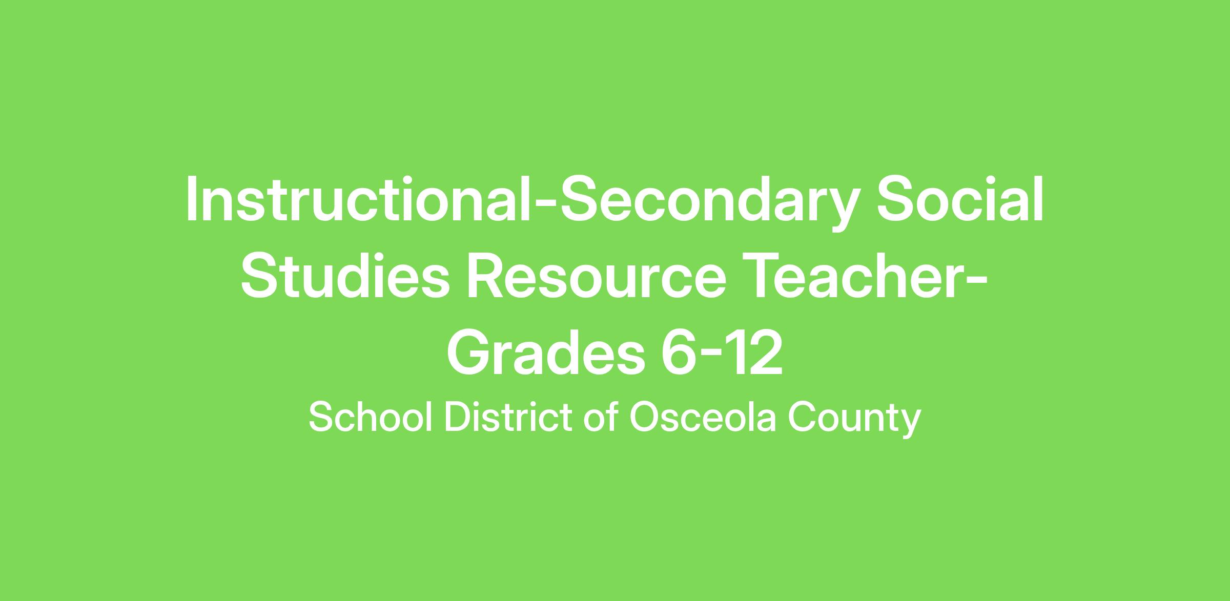 Instructional-Secondary Social Studies Resource Teacher-Grades 6-12
