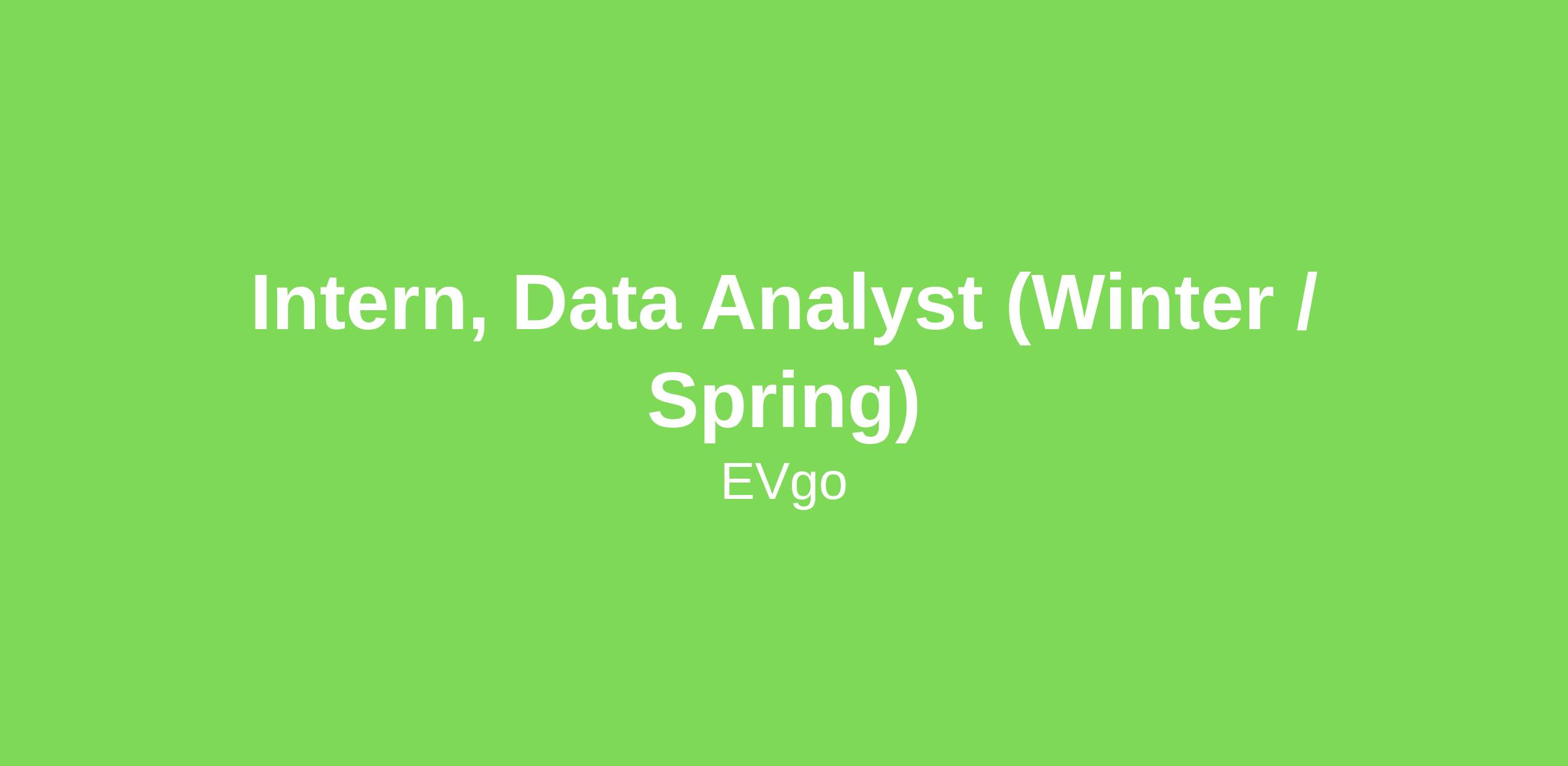 EVgo is seeking a curious and motivated Data Analyst Intern to help identify and solve challenges across our EV charging network using data and analytics. In this role you will support the Data Science R and D team by analyzing data reporting issues and contributing to improvements in our analytic tools and systems. You will gain hands on experience working with real world datasets while learning how data is used to support operations hardware and software teams across the company.
