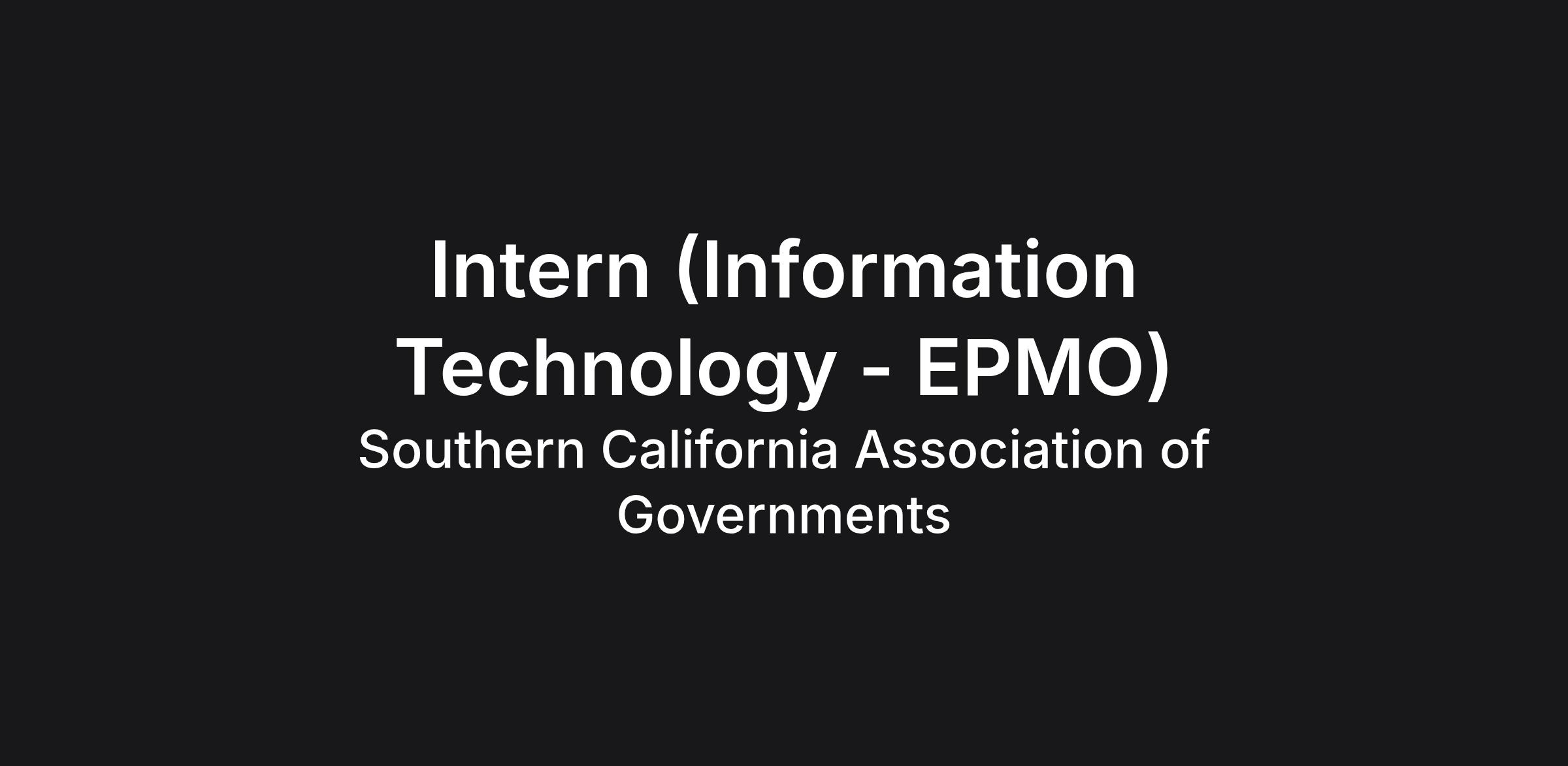 The Southern California Association of Governments (SCAG) is seeking a motivated student or recent college graduate eager to gain practical experience and create valuable connections in the field of information technology. Join our dynamic Enterprise Project and Portfolio Management (EPMO) department at SCAG for an enriching paid internship opportunity where you will participate in a wide variety of entry level professional, analytical, and administrative functions. The selected intern will help support our IT EPMO team in many ways, including creating project boards with status updates and providing support and capacity for enterprise priorities. Join us in a growth-oriented environment where you can hone your skills and make a meaningful impact on your career trajectory!