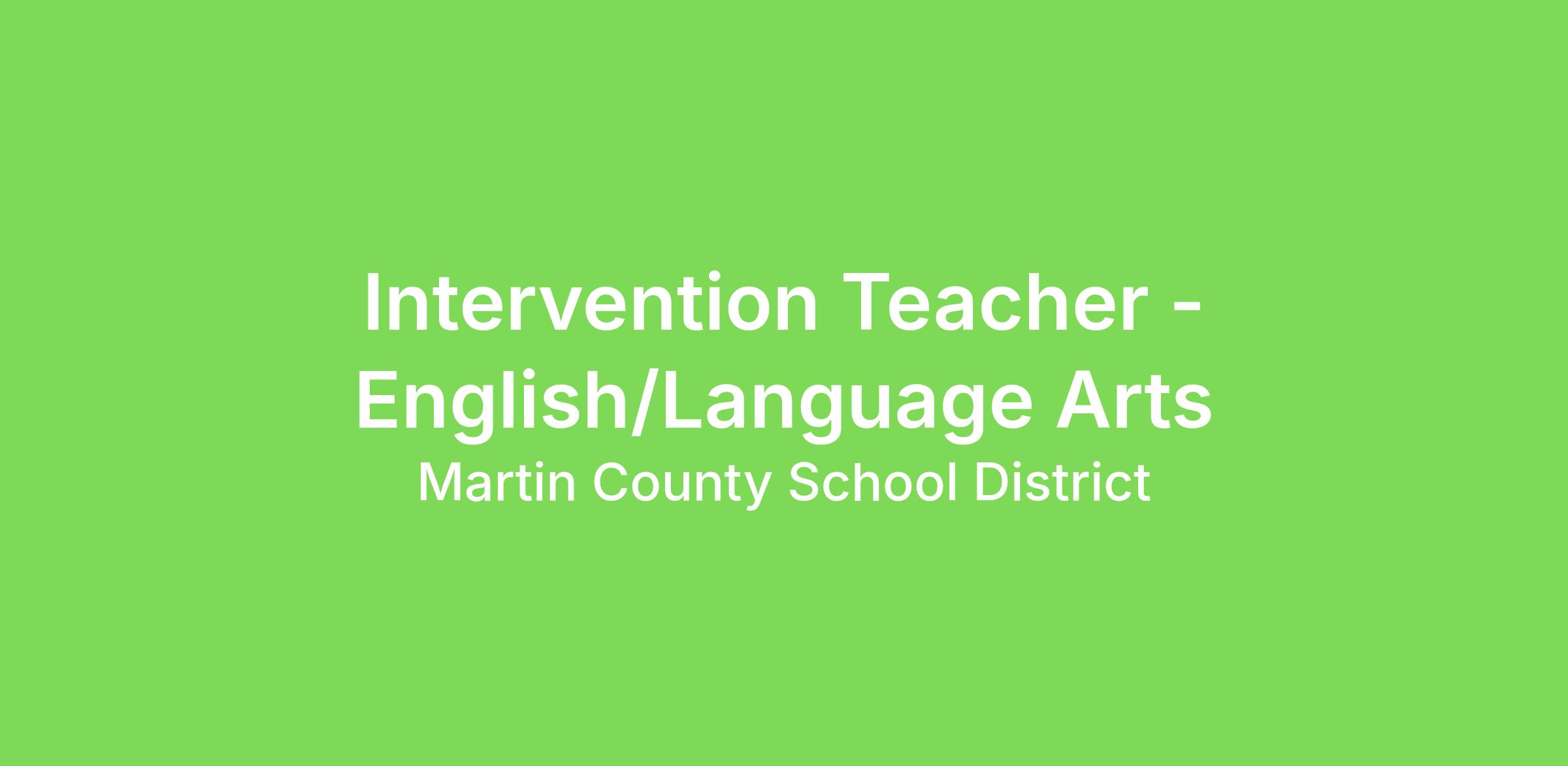 Intervention Teacher - English/Language Arts