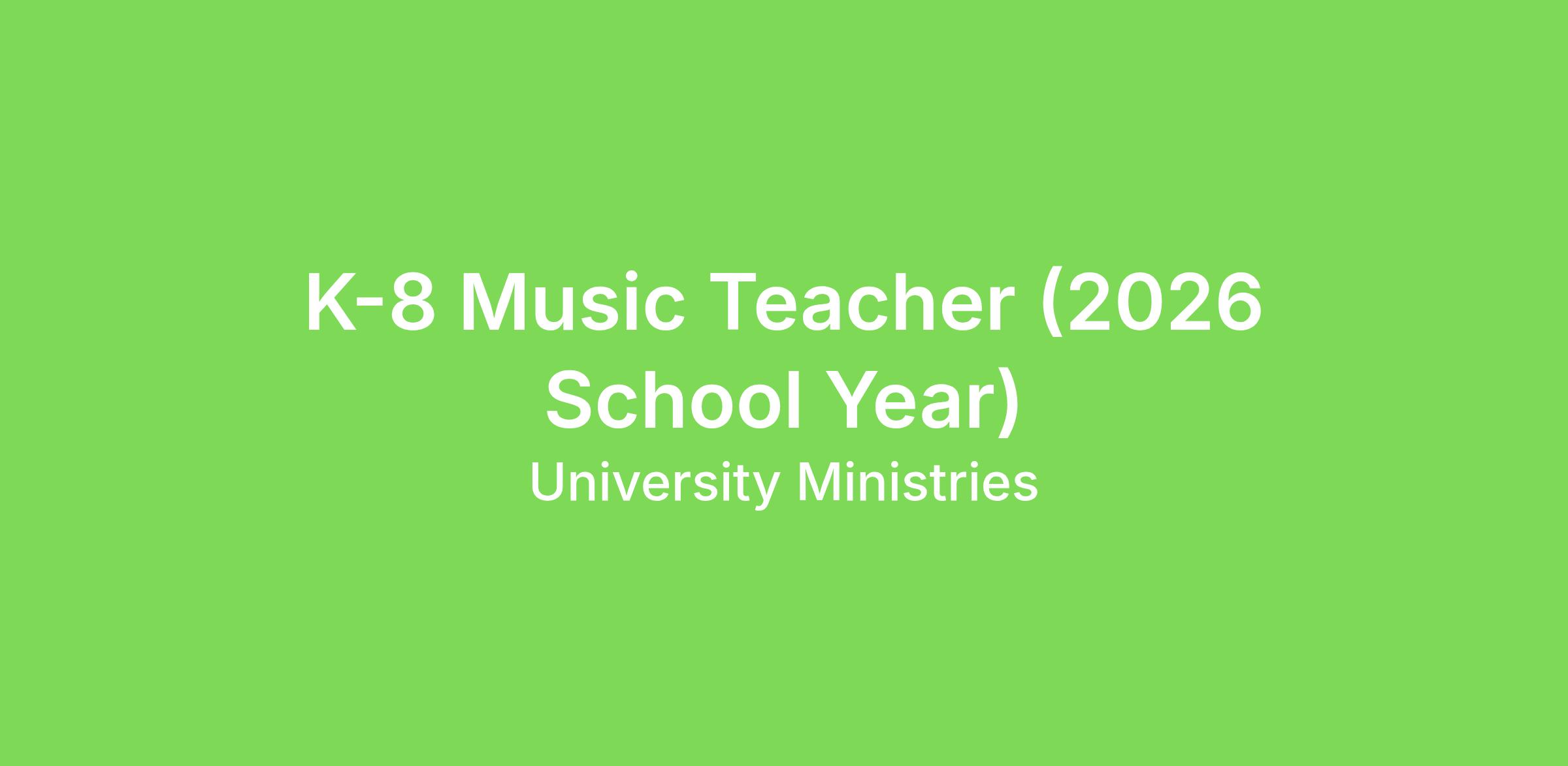 We are seeking a passionate and engaging K–8 Music Teacher to inspire students through music education and performance. The ideal candidate fosters a love for music while supporting students’ academic, social, and creative development. This position involves teaching general music, vocal instruction, and age-appropriate music theory while contributing to a positive, collaborative school culture.