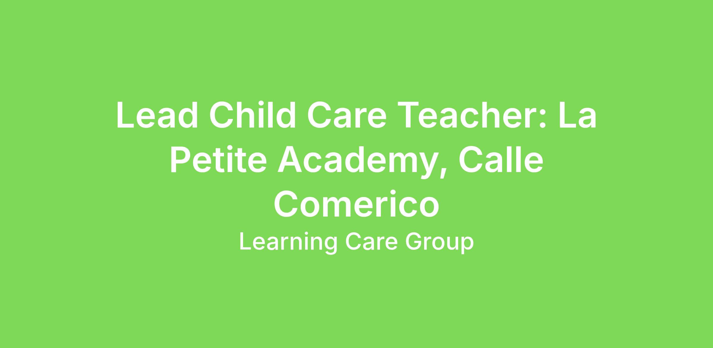 Lead Child Care Teacher: La Petite Academy, Calle Comerico
