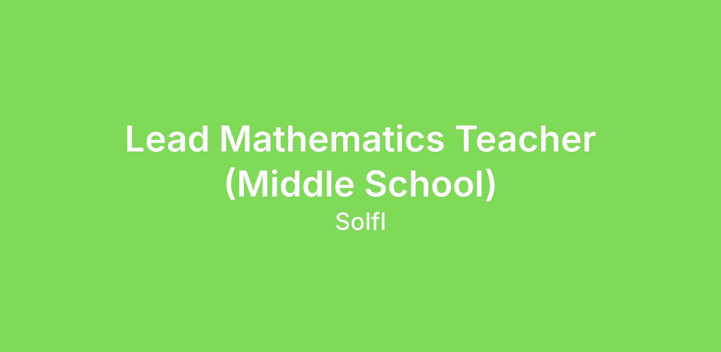 The Lead Mathematics Teacher for Middle School is responsible for teaching middle school Math through Algebra 1 with strong instruction, strong classroom management, and a clear commitment to student growth. This person should be able to make Math engaging, practical, and challenging while maintaining high academic standards.