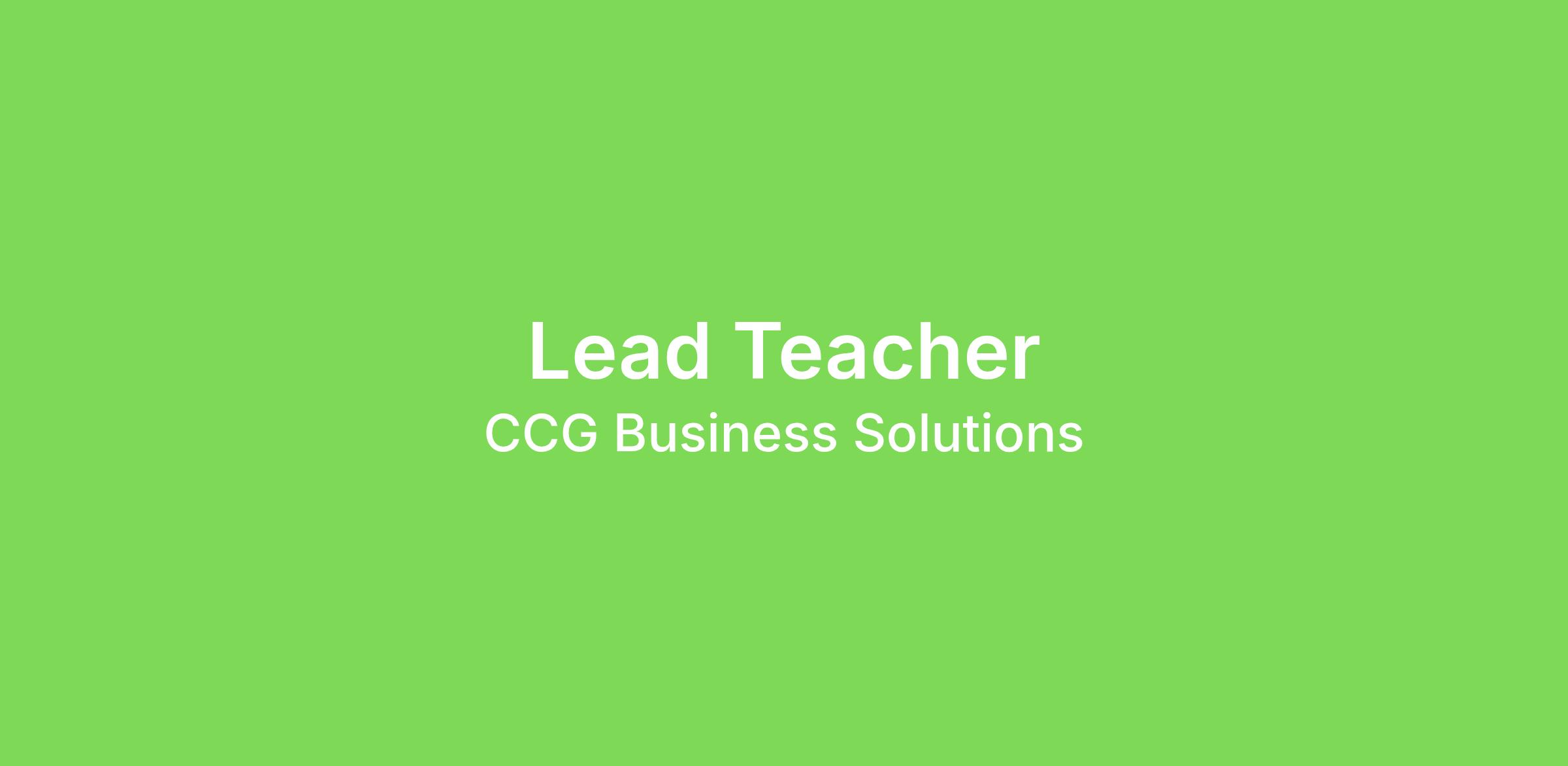 CCG Talent Management is a business solutions company. We provide business consulting and talent placement services. Our team understands the principles of connecting purpose to business and career placement. The Talent Management Division is currently seeking a Lead Teacher