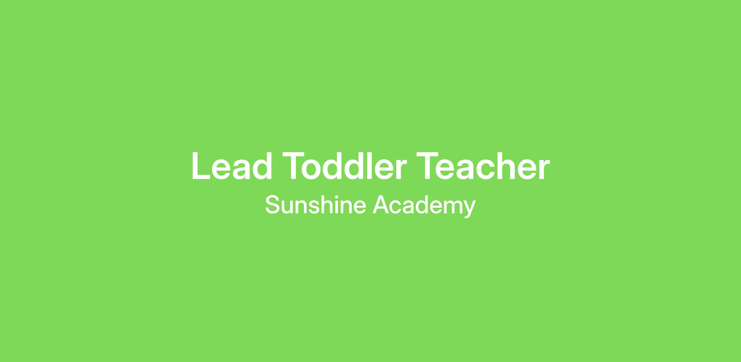 Lead Teacher: $16-$18 Per Hour