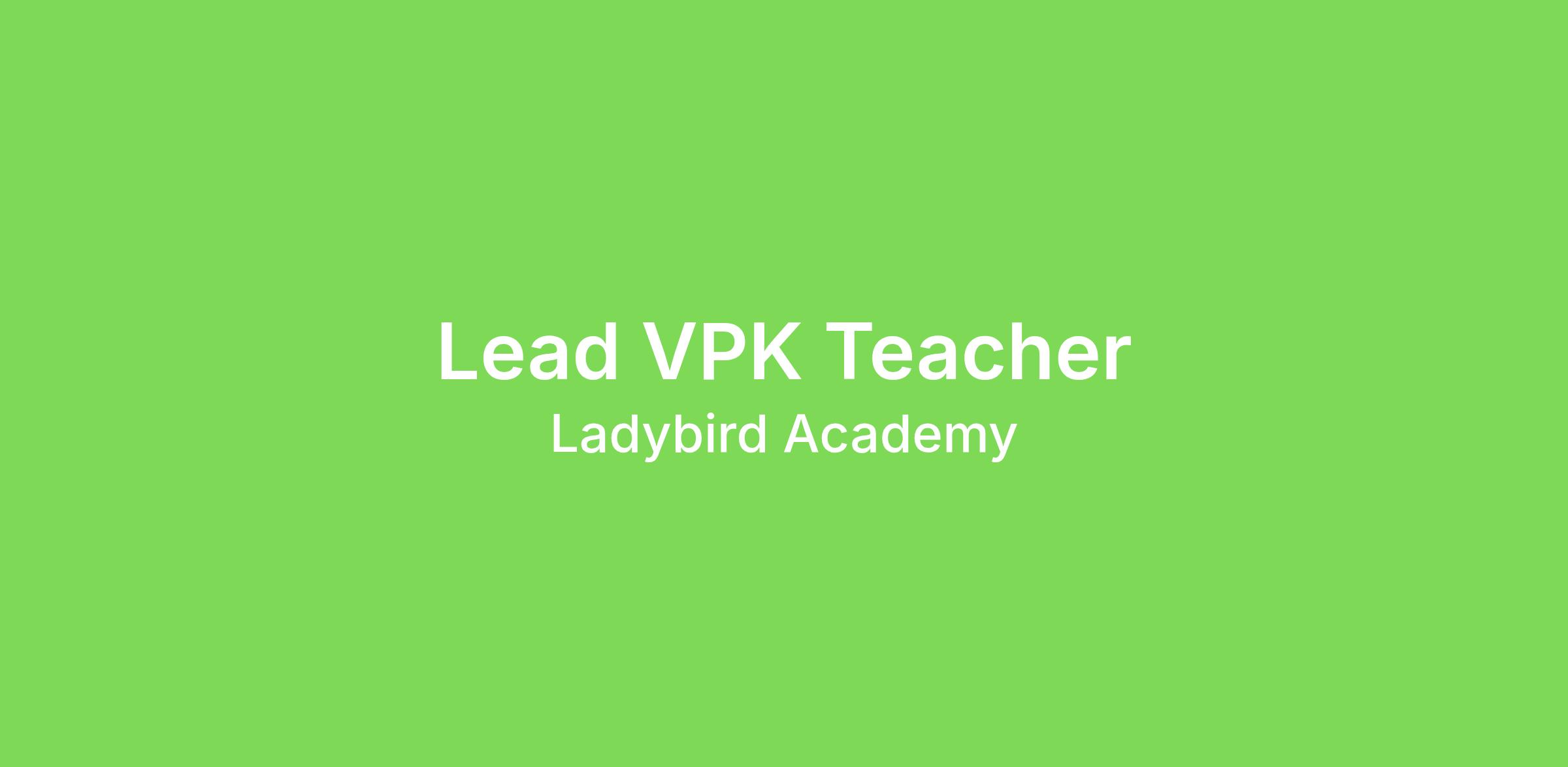 Ladybird Academy of Ocoee is seeking professional, experienced Lead VPK Teachers who are passionate about making a difference in the lives of children, every single day. As a Lead VPK Teacher, you will be responsible for supervising your children at all times, implementing lesson plans, completing daily reports, help train Assistant Teachers, provide positive feedback to parents, while maintaining a safe and secure environment for the children in your classroom.