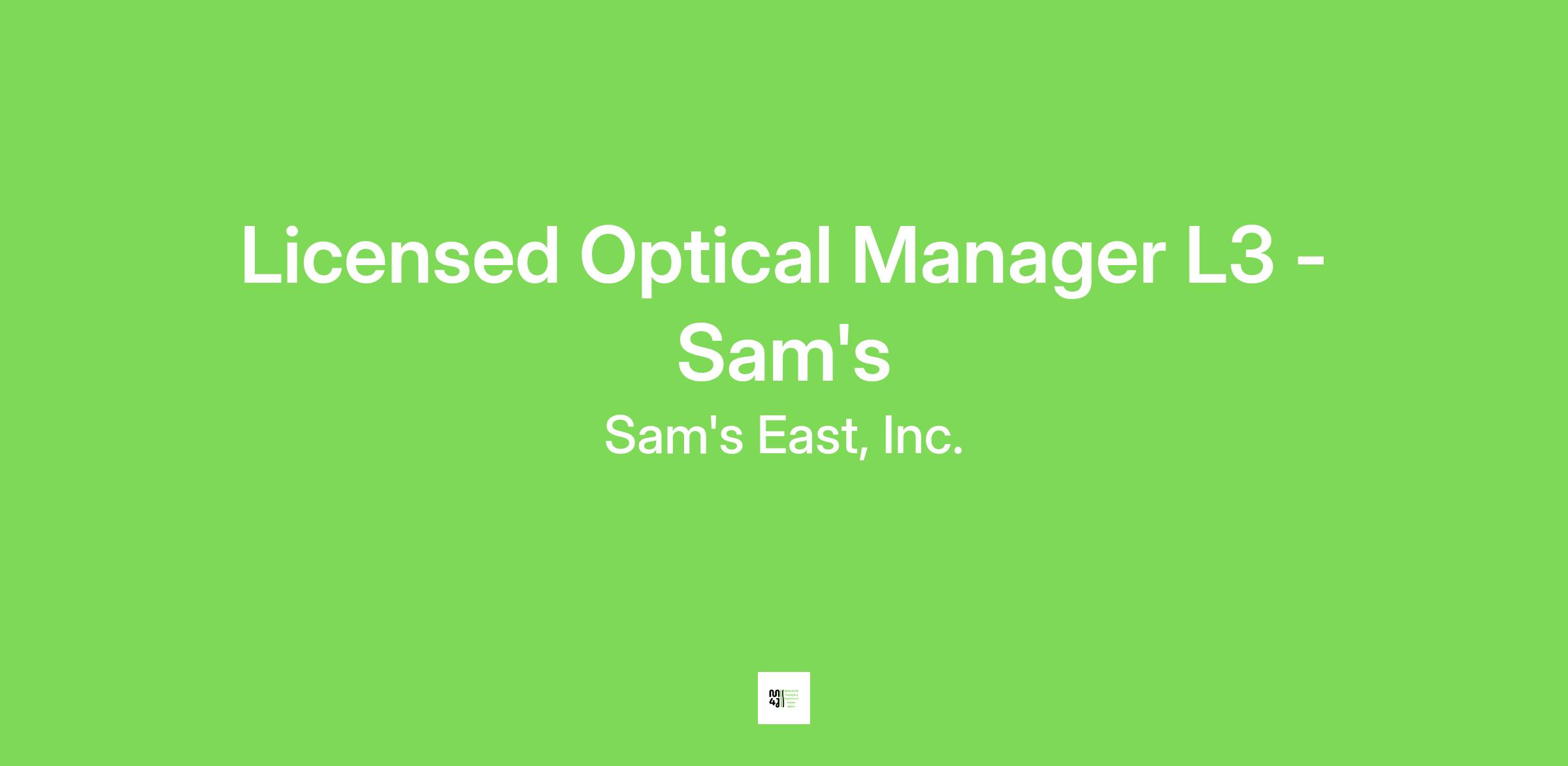 Ensures the provision of quality eyewear by consulting with and educating Members Customers selecting products based on Member Customer needs obtaining measurements verifying prescriptions maintaining confidential information performing minor frame repair and maintaining Optical equipment. Upholds the Company's Open Door Policy: by meeting with Associates and listening to concerns researching issues reviewing Company policies and procedures and suggesting resolution for Associates Coordinates completes and oversees job-related activities and assignments by developing and maintaining relationships with key stakeholders supporting plans and initiatives to meet customer and business needs identifying and communicating goals and objectives building accountability for and measuring progress in achieving results identifying and addressing improvement opportunities and demonstrating adaptability and promoting continuous learning Provides supervision and development opportunities for associates by hiring and training mentoring assigning duties providing recognition and promoting a belonging mindset in the workplace Ensures compliance with company policies and procedures and supports company mission values and standards of ethics and integrity by implementing related action plans utilizing and supporting the Open Door Policy: and providing direction and guidance on applying these in executing business processes and practices Respect the individual: Builds high performing teams embraces differences in people cultures ideas and experiences creates a workplace where associates feel seen supported and connected through a culture of belonging creates opportunities for all associates to thrive and performx000B Respect the individual: Works collaboratively builds strong and trusting relationships communicates with impact energy and positivity to motivate and influencex000B Respect the individual: Attracts and retains the best talent empowers and develops talent and recognizes others contributions and accomplishments Act with Integrity: Maintains and promotes the highest standards of integrity ethics and compliance models the Walmart values to support and foster our culture holds oneself and others accountable supports Walmart's goal of becoming a regenerative company by making a positive impact for associates customers members and the world around us by creating a sense of belonging eliminating waste participating in local giving Act with Integrity: Acts in a selfless manner and is consistently humble self-aware honest fair and transparent Serve Our Customers and Members Delivers results while putting the customer first considers and adapts to how where and when customers shop and applies the EDLP and EDLC business models to all plans Serve Our Customers and Members Makes decisions based on data insights and analysis balances short and long-term priorities and considers our customers fellow associates shareholders suppliers business partners and communities when making plans Strive for Excellence: Displays curiosity and a desire to learn takes calculated risks demonstrates courage and resilience and encourages learning from mistakes Strive for Excellence: Drives continuous improvements adopts and encourages the use of new technologies and skills and supports others through change At Sam's Club, we offer competitive pay as well as performance-based bonus awards and other great benefits for a happier mind, body, and wallet!