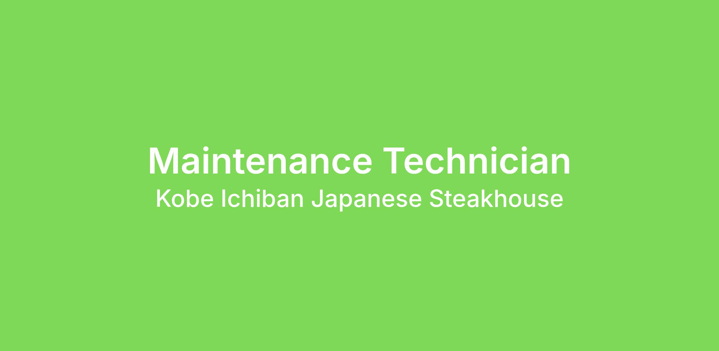 Kobe Ichiban Japanese Steakhouse is seeking a dependable and motivated Maintenance Technician to join our team. This is an excellent opportunity for someone who enjoys hands-on work, takes pride in maintaining facilities, and is eager to expand their skills in building and equipment maintenance.