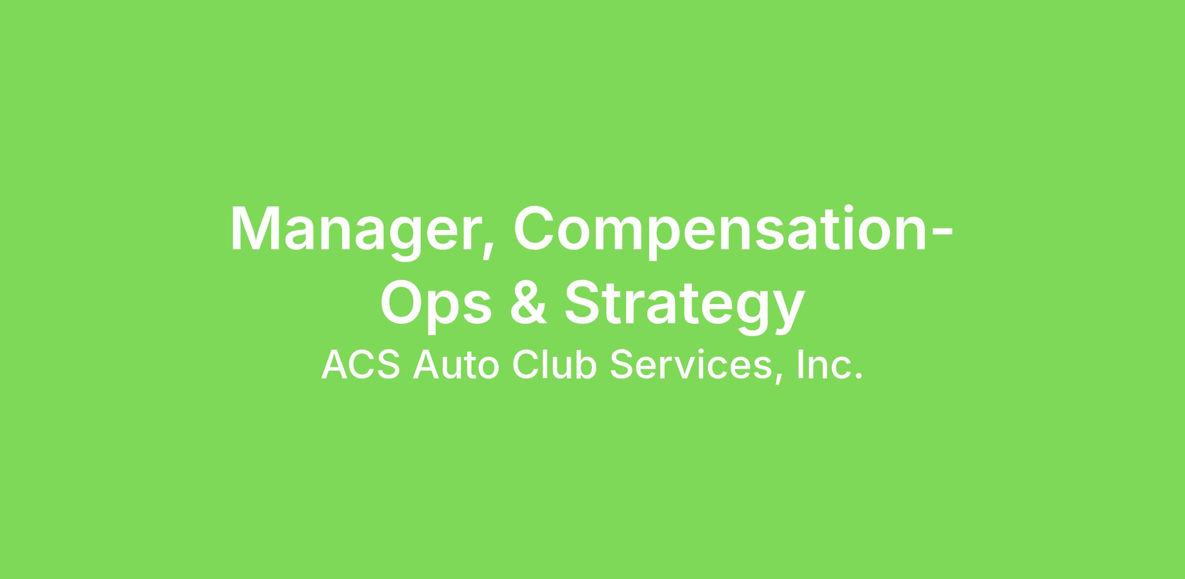 Manager, Compensation Ops & Strategy - The Auto Club Group