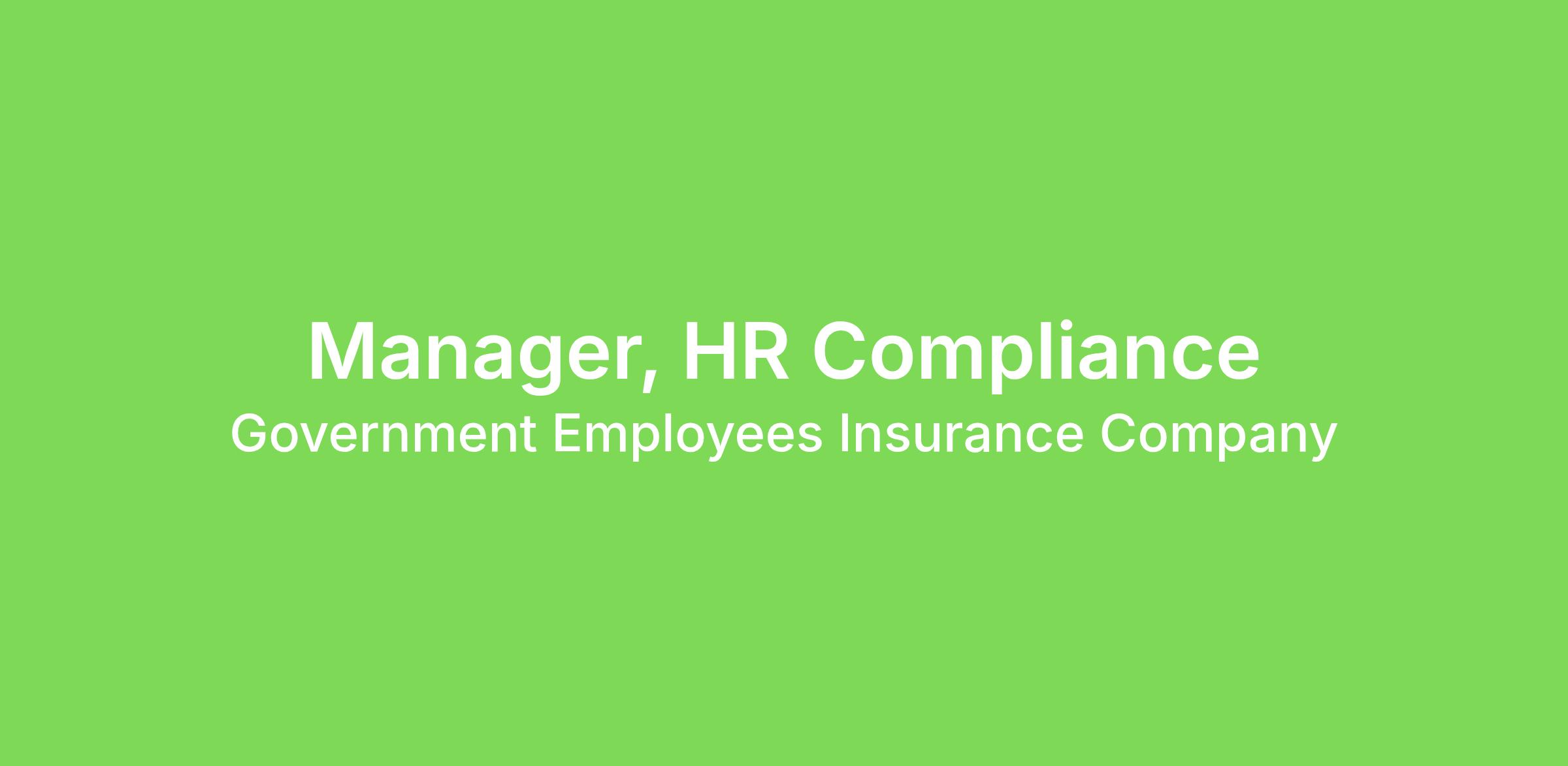 GEICO is seeking an experienced HR Compliance Manager to lead the development, execution, and ongoing governance of employment compliance programs across Workers’ Compensation, OSHA, regulatory reporting, audit remediation, and HR policy governance.