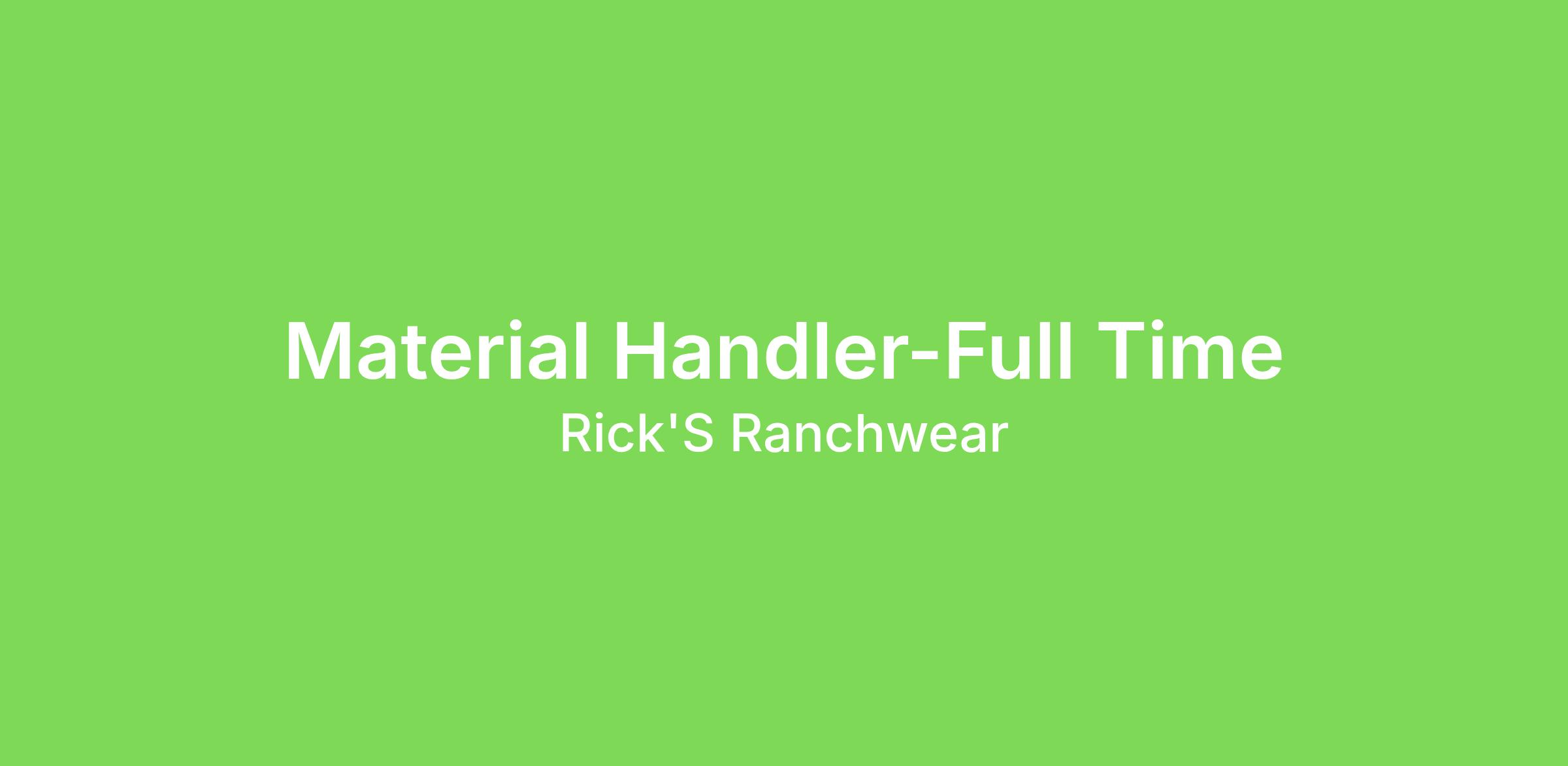 Full-time, permanent opening available now. Warehouse Material Handler