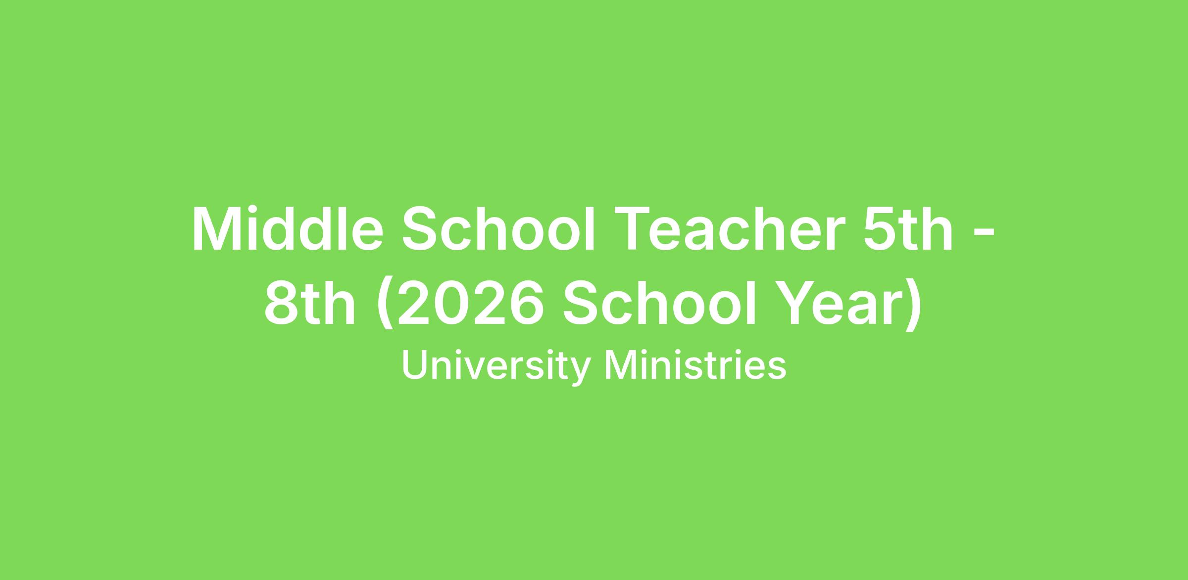 Middle School Teacher 5th - 8th (2026 School Year)