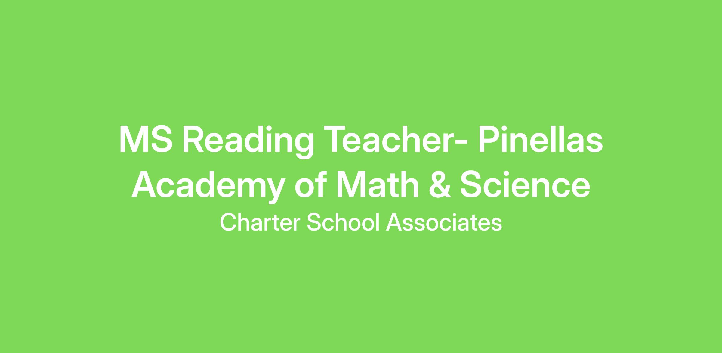 MS Reading Teacher- Pinellas Academy of Math & Science