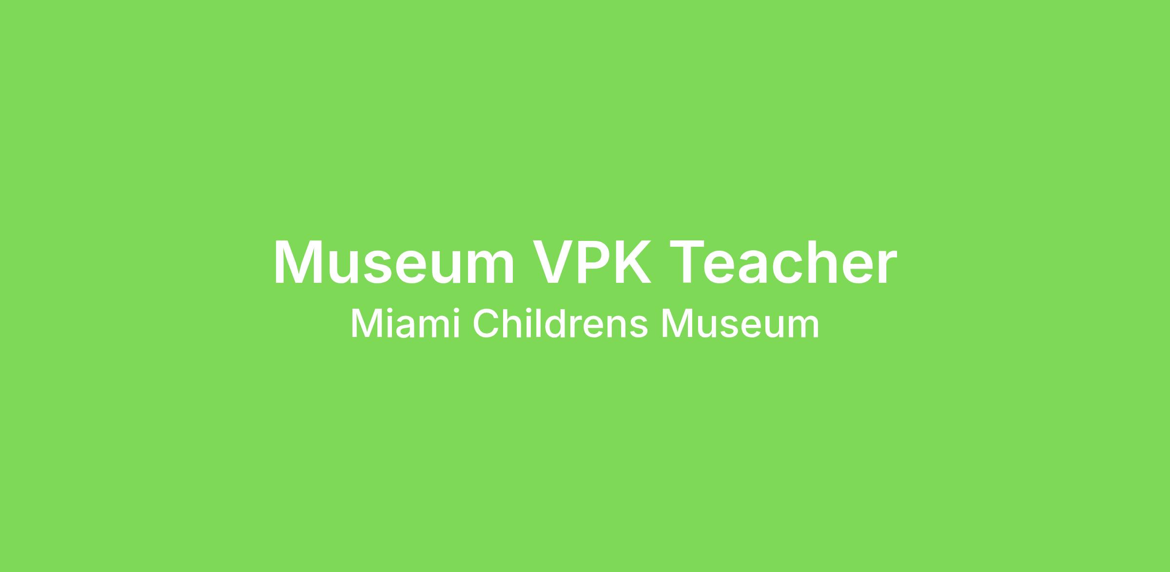 Miami Children’s Museum is seeking a warm, creative, and dedicated Museum VPK Teacher to join our Early Childhood Institute! This is a unique opportunity to teach in an innovative, museum-based learning environment where curiosity, play, and child-led discovery guide the day.