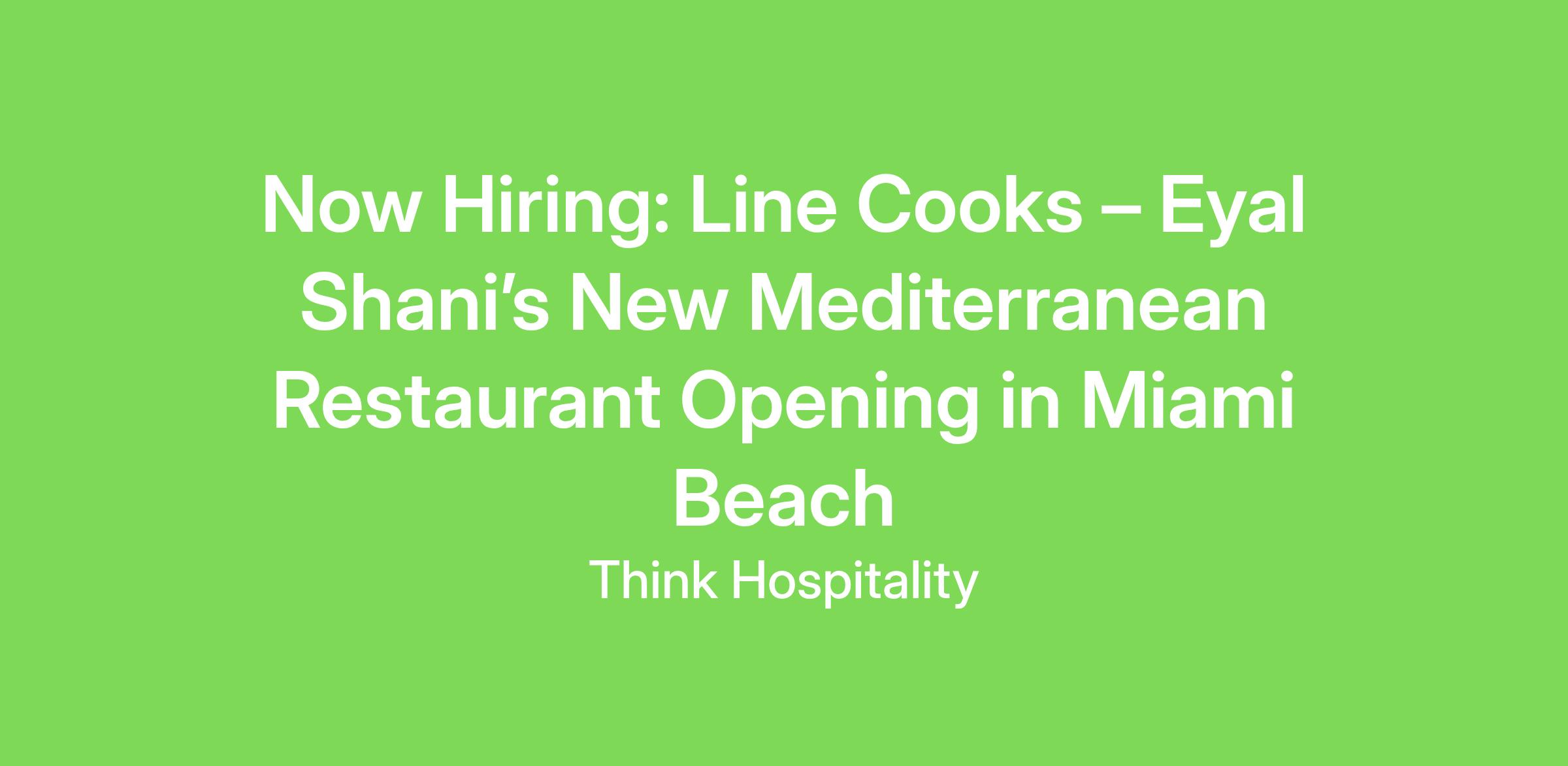 We're bringing the vibrant flavors, and warm hospitality of the Mediterranean to Miami Beach and we're looking for experienced, motivated, dedicated and skilled Line Cooks to join our opening kitchen team!