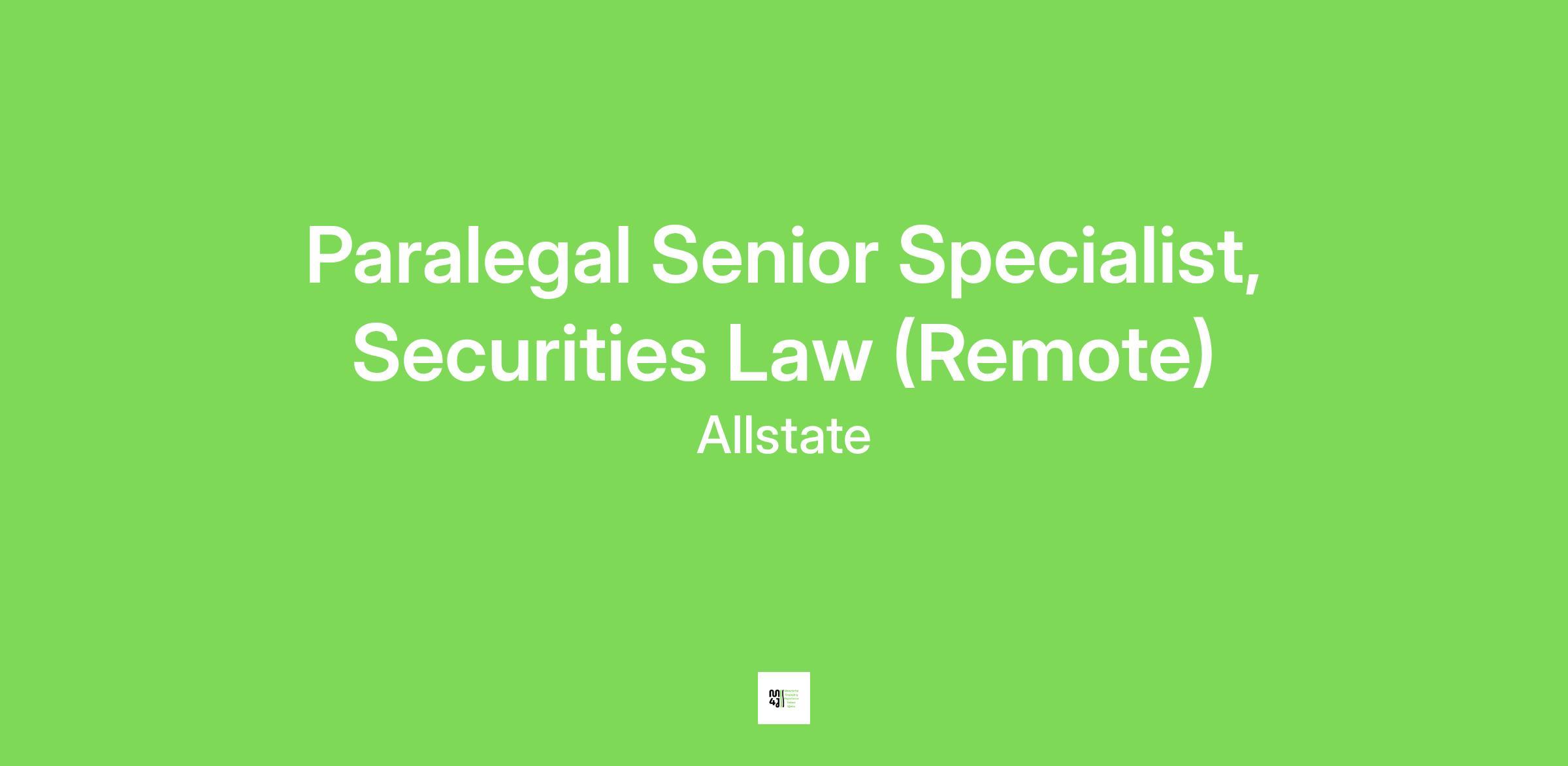The Allstate Corporation is seeking an experienced paralegal to join our Securities Law team. The position will play a critical role in maintaining our compliance with applicable securities laws and supporting a variety of corporate governance initiatives.