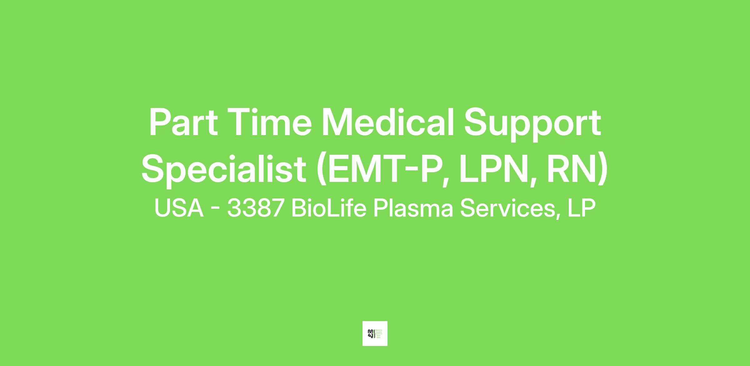 Every day, the donors you meet will motivate you. The high-quality plasma you collect will become life-changing medicines. Here, a commitment to customer service and quality is expected. You will report to the Plasma Center Manager and will perform as a Medical Support Specialist (Plasma Center Nurse) to support plasma center operations.