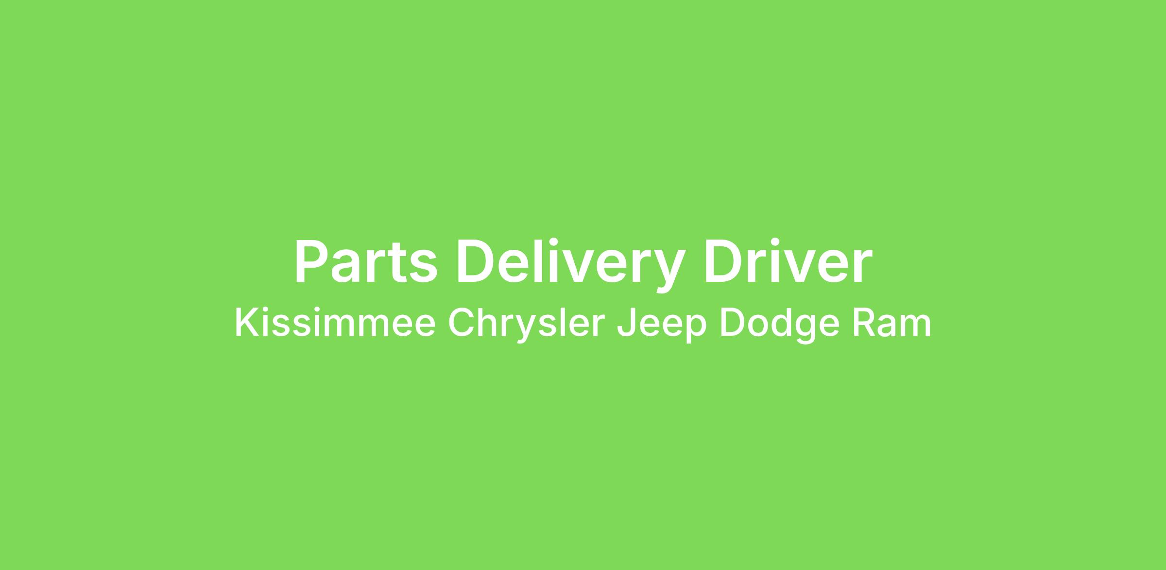 The Ed Napleton Automotive Group is looking for our next Part Delivery Driver. This is an exciting opportunity in a growing, fast-paced industry. Located at Napleton's Kissimmee CDJR, the Parts Delivery Driver is responsible for the transportation of vehicle parts.