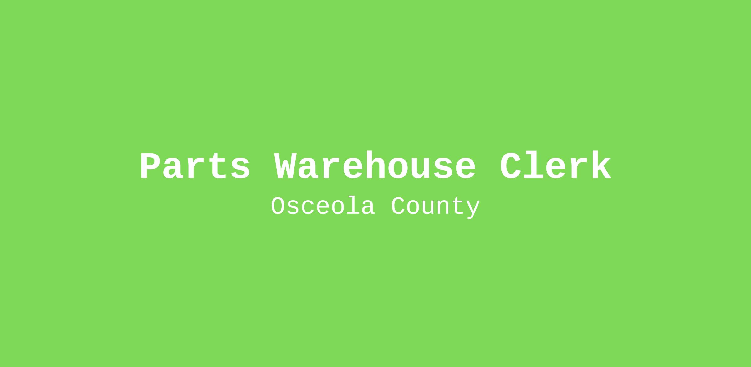Under direction, the purpose of the position is to provide administrative and clerical support involving the receiving, storing, and issuing of parts, supplies, tools, and equipment. Position is responsible for maintaining the continuous supply of quality parts and equipment. Employee ensures the accurate maintenance of inventory records and efficient storage of supplies. This position may assume responsibility in the absence of the Parts Manager.