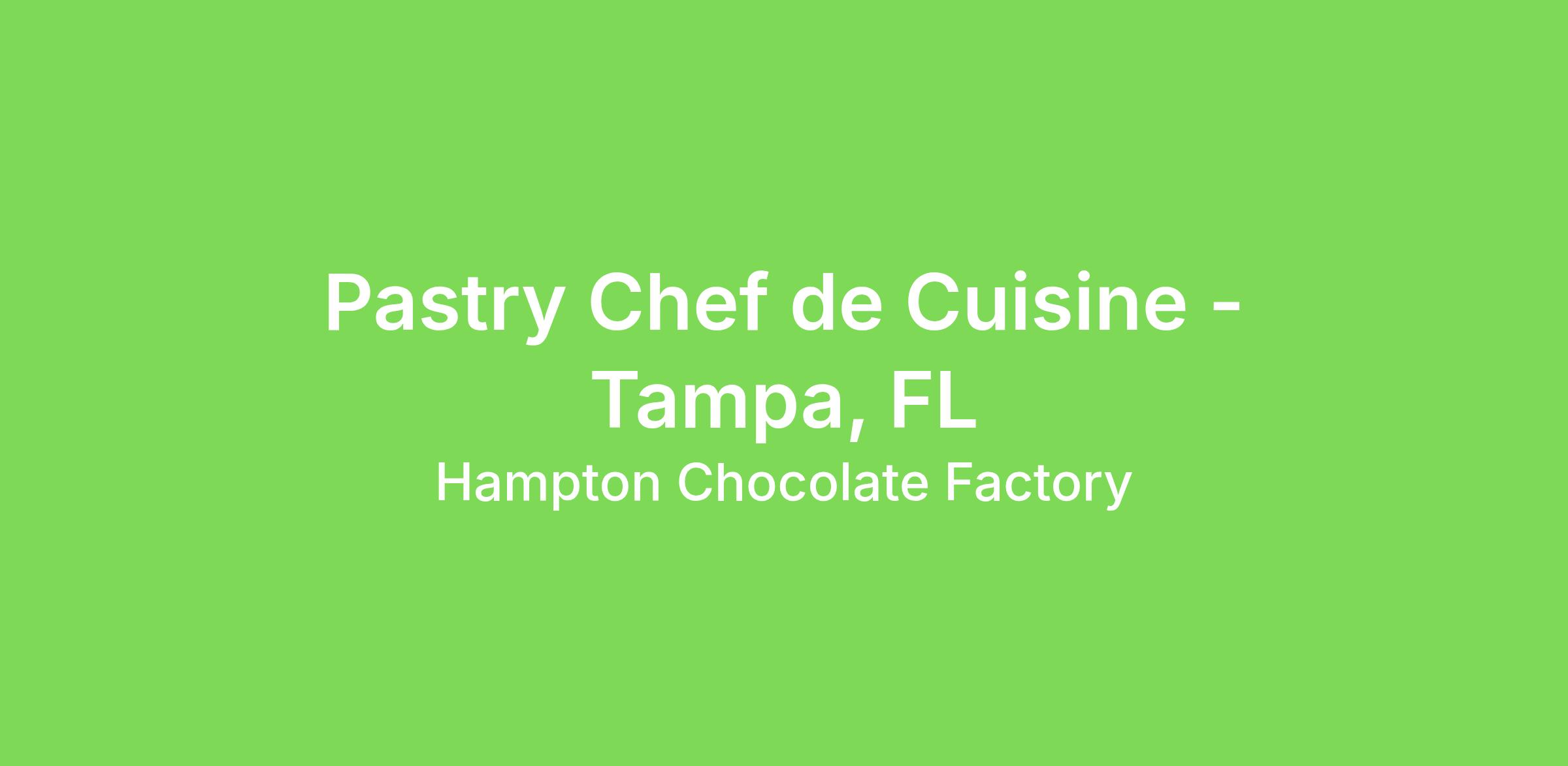 As the Pastry Chef de Cuisine (Assistant General Manager), you will serve as both the creative and operational backbone of Hampton Chocolate Factory’s dessert experience. This leadership role bridges culinary innovation and operational excellence—ensuring that our kitchen operates with precision, our products maintain uncompromising quality, and our guest experience consistently delivers a One-of-a-Kind Memorable Experience (OOAKME).