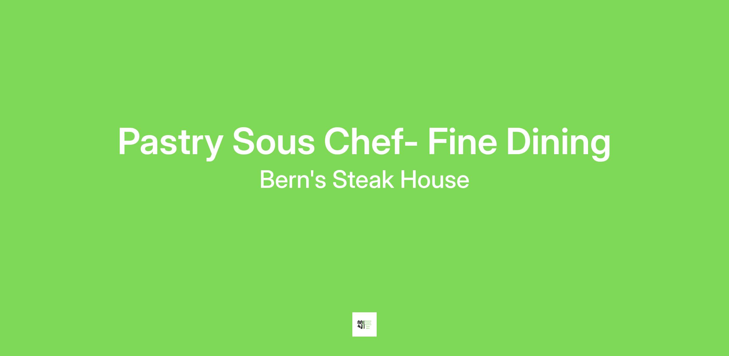 Pastry Sous Chef will be responsible to ensure exceptional preparation of all desserts and pastries to all guests and have the ability to develop and maintain a strong team environment that is consistent and continually in accordance to the Bern’s Steak House/Harry Waugh Room standards. This is a mostly PM shift and will need the candidate to work late-night hours.