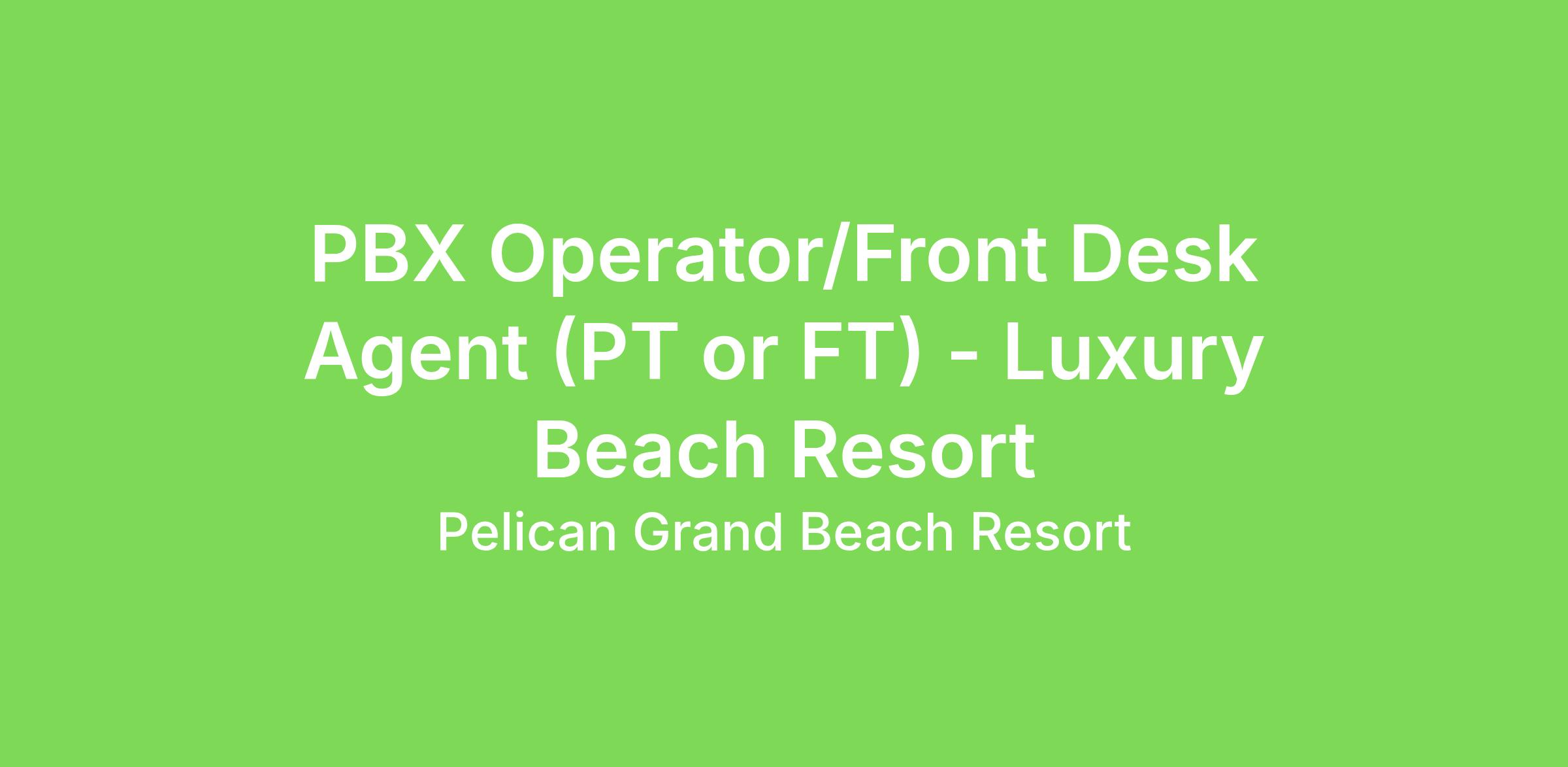 If you are PASSIONATE about BEST in SERVICE, here is why you want to work for us….At THE PELICAN GRAND BEACH RESORT, we passionately strive to be the best and create excellence in everything we do. More than a slogan, we empower our employees to make positive impacts BY providing genuine service, the relationships we build with our guests and creating unforgettable experiences.