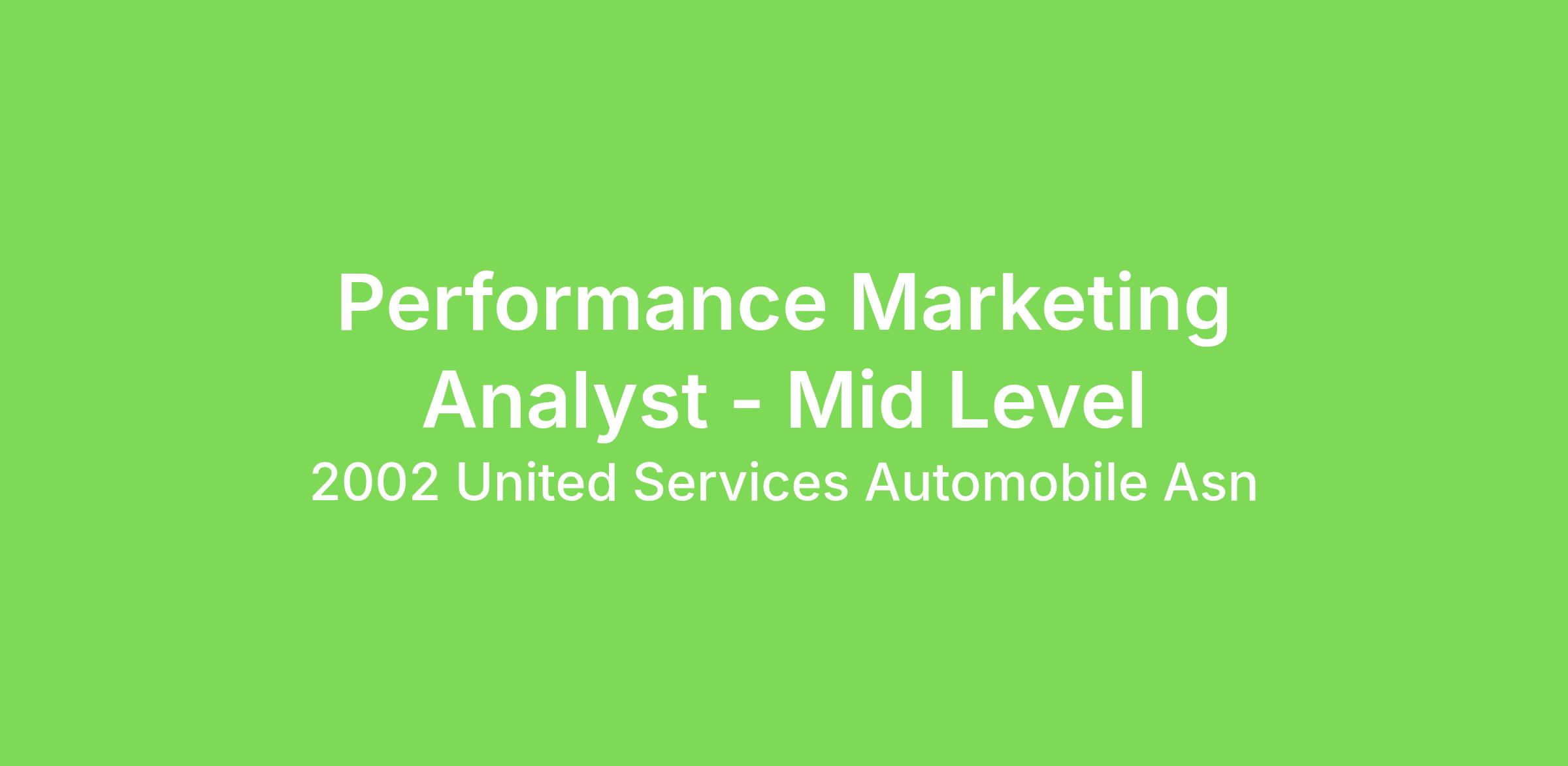 USAA is enhancing its digital experience to better serve our members' evolving needs. To support this, our marketing analytics team is expanding its focus to encompass the with a focus on paid media optimization to drive maximum efficiency & growth. We're seeking a Paid Media Decision Science Analyst to be a foundational member of our marketing team, playing a key role in shaping data-driven improvements across our digital sales experience.