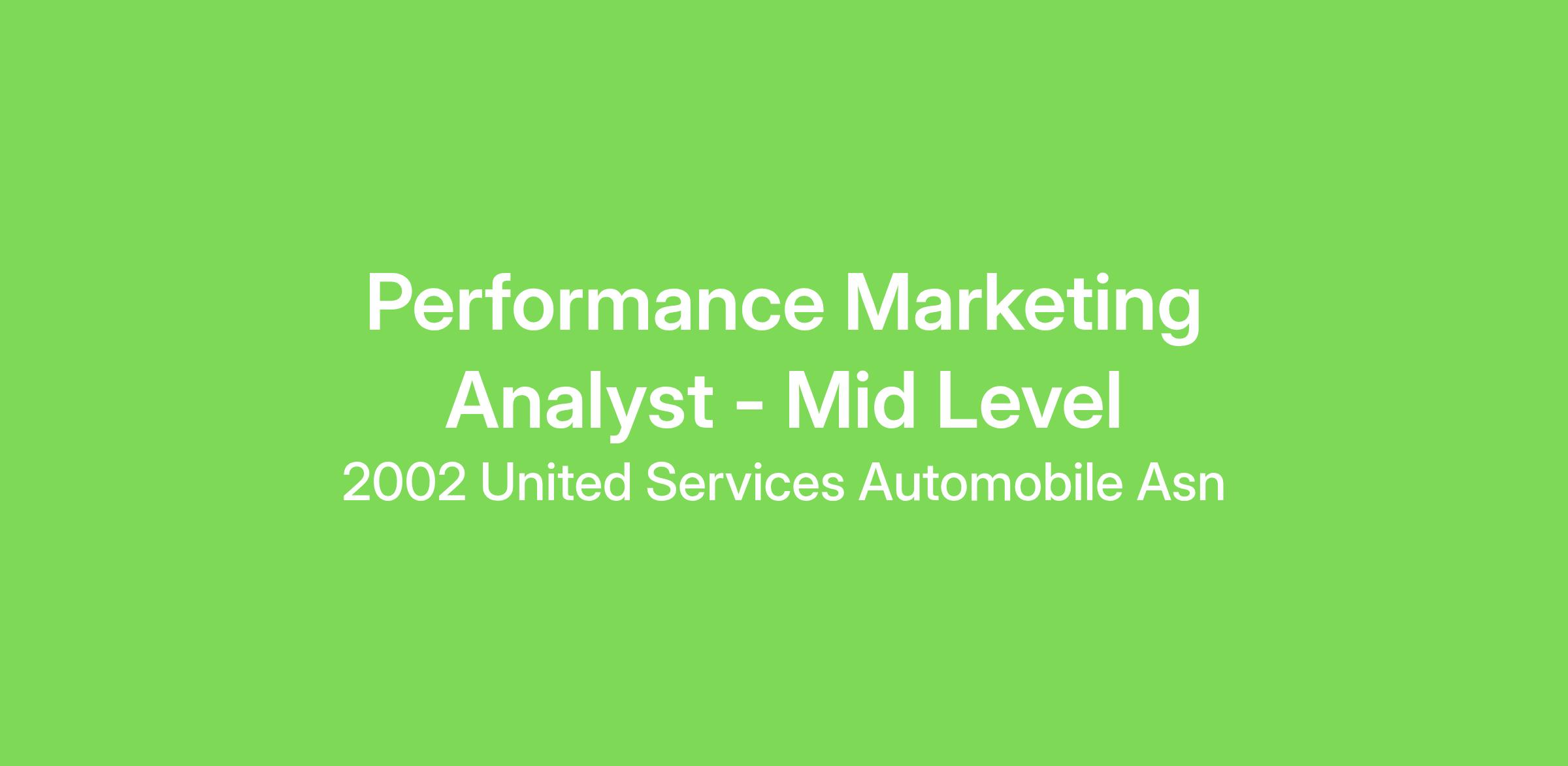 USAA is enhancing its digital experience to better serve our members' evolving needs. To support this, our marketing analytics team is expanding its focus to encompass the with a focus on paid media optimization to drive maximum efficiency & growth. We're seeking a Paid Media Decision Science Analyst to be a foundational member of our marketing team, playing a key role in shaping data-driven improvements across our digital sales experience.