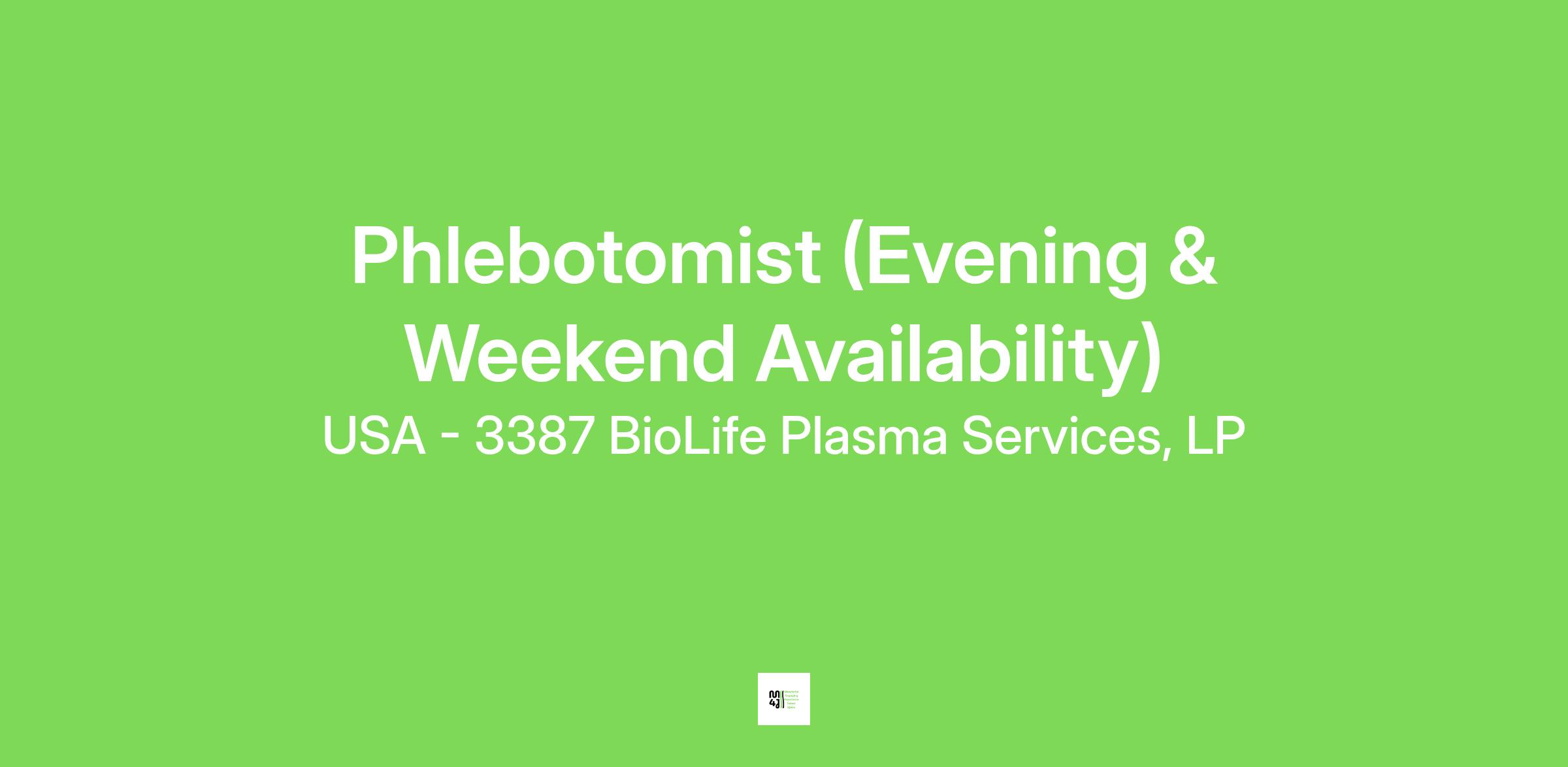 Every day, the donors you meet will motivate you. The high-quality plasma you collect will become life-changing medicines. Here, a commitment to customer service and quality is expected. You will report to the Plasma Center Manager and will perform as a plasma donor screener and perform phlebotomy to support plasma center operations.