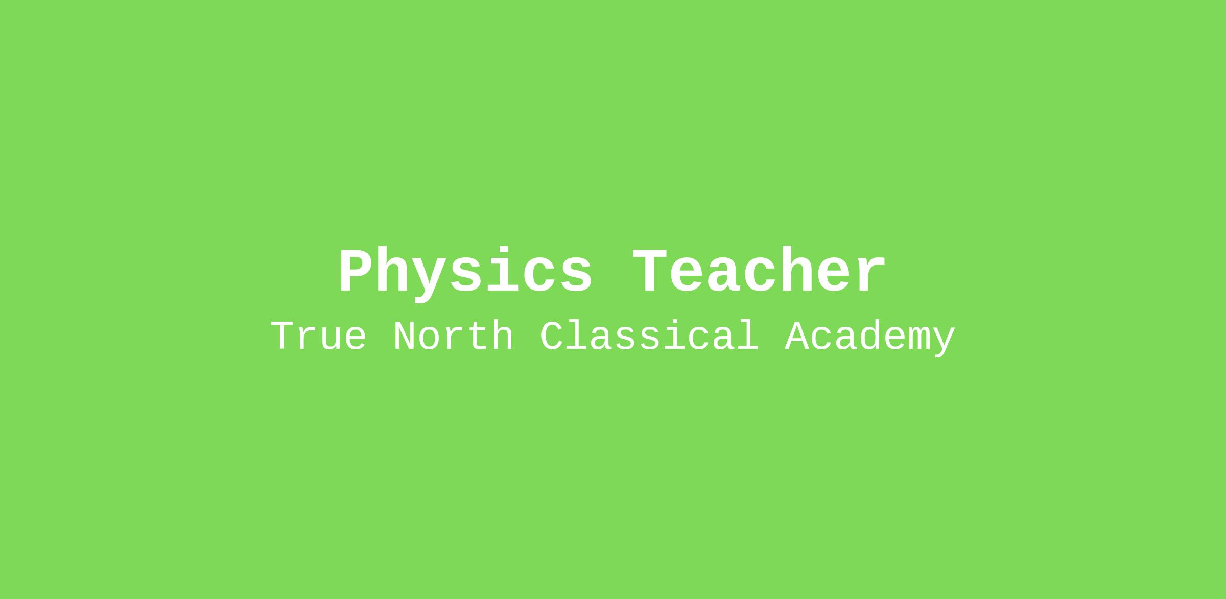 True North Classical Charter, a network of high-achieving classical schools in Miami, FL, is seeking passionate and knowledgeable educator to teach High School Physics for the 2025-2026 school year.