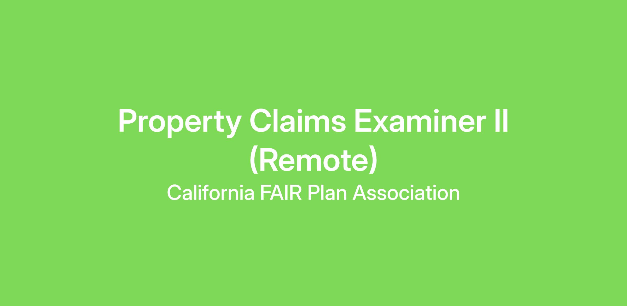 The Claims Examiner II processes insurance claims for property losses based on coverage, appraisal, and verifiable damage. They will interact with independent adjusters and policy holders, review claim forms and other records to determine insurance coverage. This person will make payment recommendations and settlements in accordance with company practices, procedures, and Fair Claims Settlement Practices regulations.