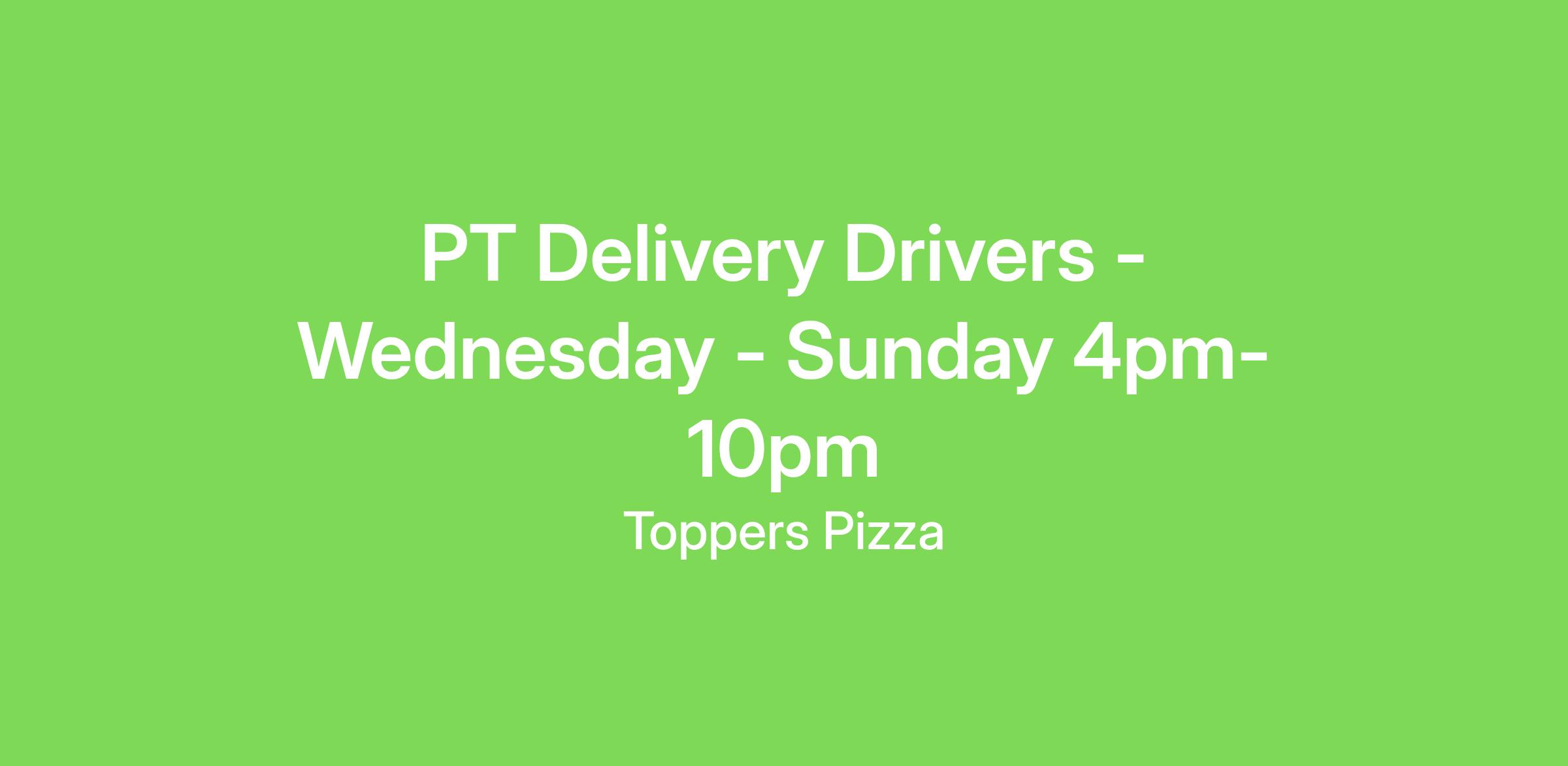 Being a Driver for Toppers is perfect for you if you: * Are 18 • have had a valid driver's license for two years (after probationary) * Have a dependable vehicle that is insured with the required liability insurance * A clean driving record * A never settle attitude and an out of this world personality * An irrational love pizza